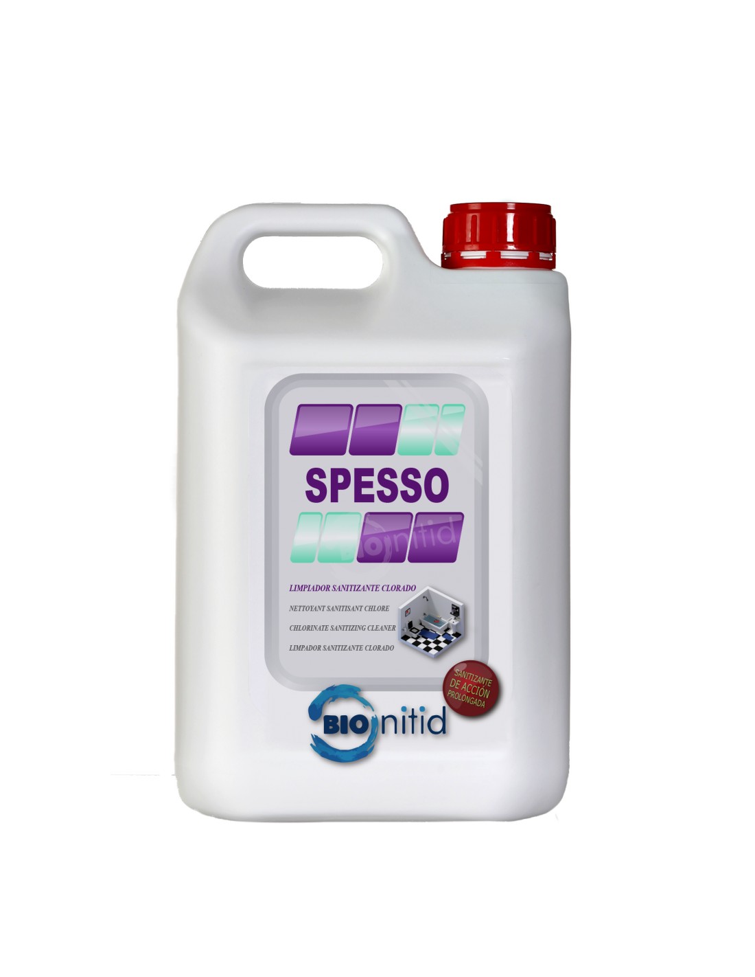 Composició i Eficàcia Spesso és un detergent líquid alcalí formulat amb tensioactius no iònics d alt poder emulsionant i segrestant. Dissol eficaçment greixos animals, vegetals i olis minerals. La seva fórmula concentrada és ideal per a múltiples aplicacions des de la neteja de campanes i fregidores fins al rentat de roba de treball (diluït). Mode d ocupació Dilució segons l ús 1100 per a neteja general, 110 per a brutícia forta. Aplicar, deixar actuar i esbandir amb aigua. Entorn Recomanat Cuines industrials, tallers mecànics, bugaderies professionals per a roba de treball i neteja de terres industrials.