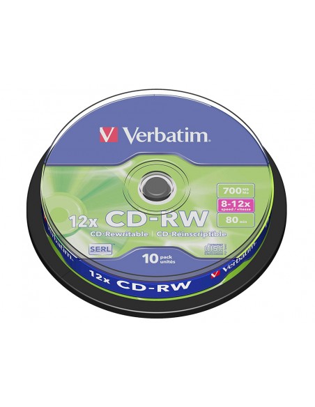 Cd-rw verbatim serl capacitat 700mb velocitat 12x 80 min tarrina de 10 unitats