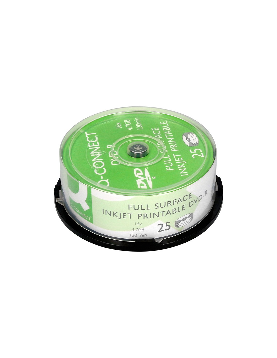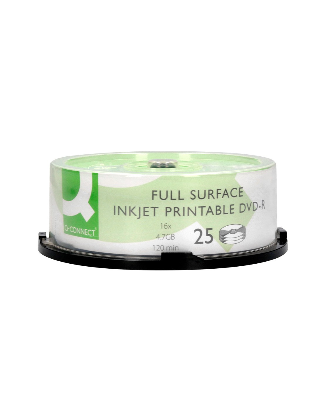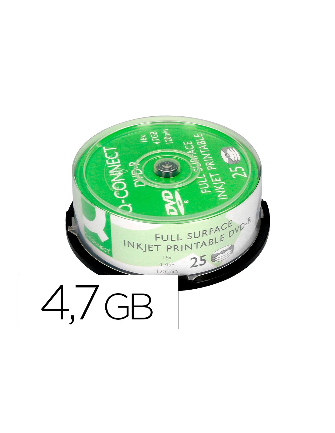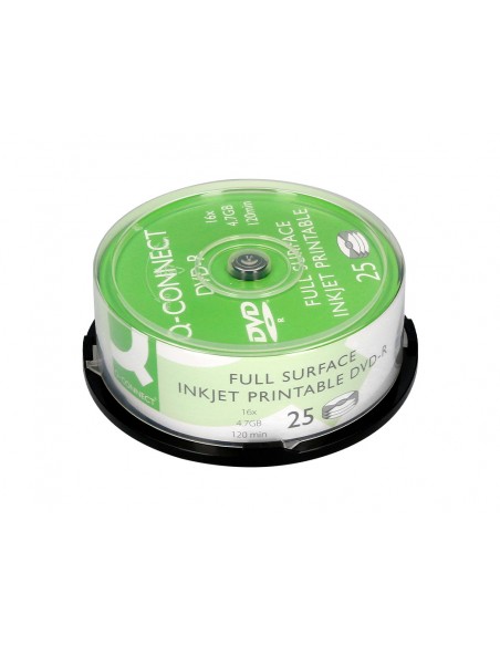 Dvd-r q-connect amb superfície 100% imprimible per a inkjet capacitat 4,7gb durada 120mivelocitat 16x pot de 25 unid