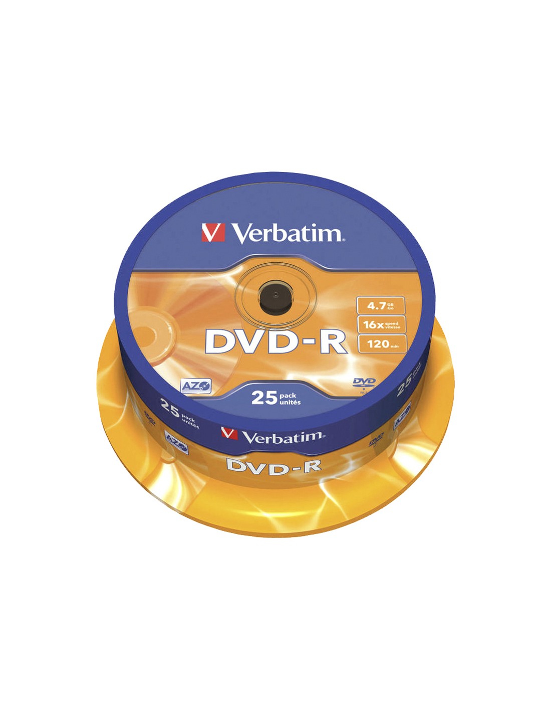 Dvd-r verbatim capacitat 4.7gb velocitat 16x 120 min tarrina de 25 unitats