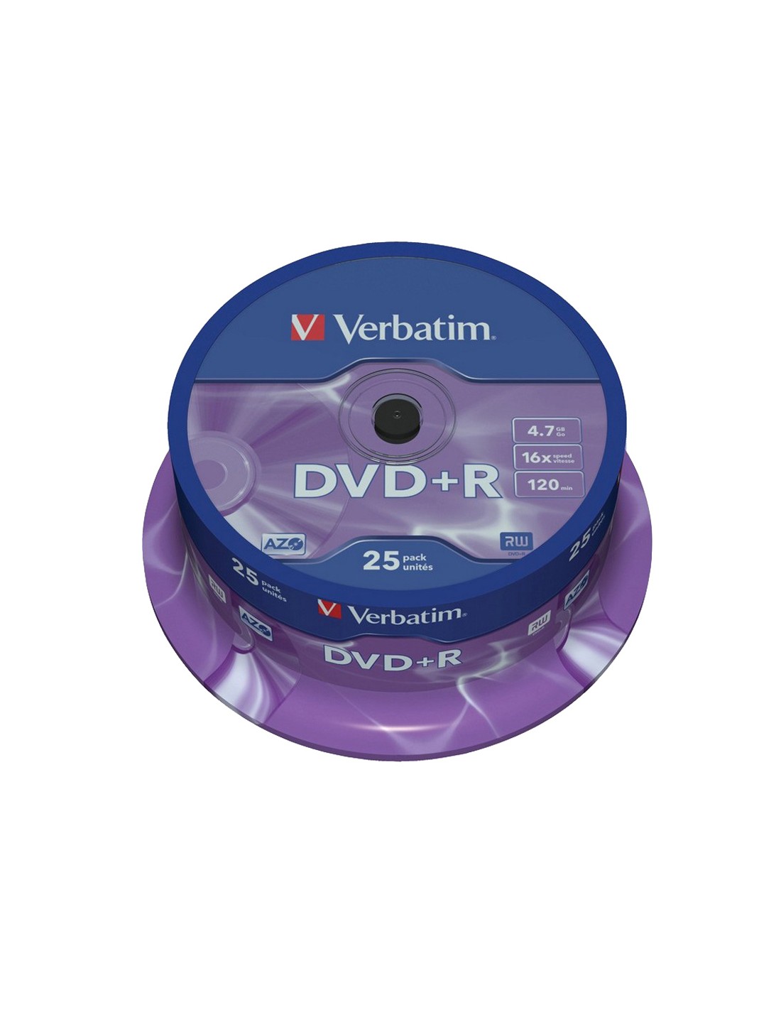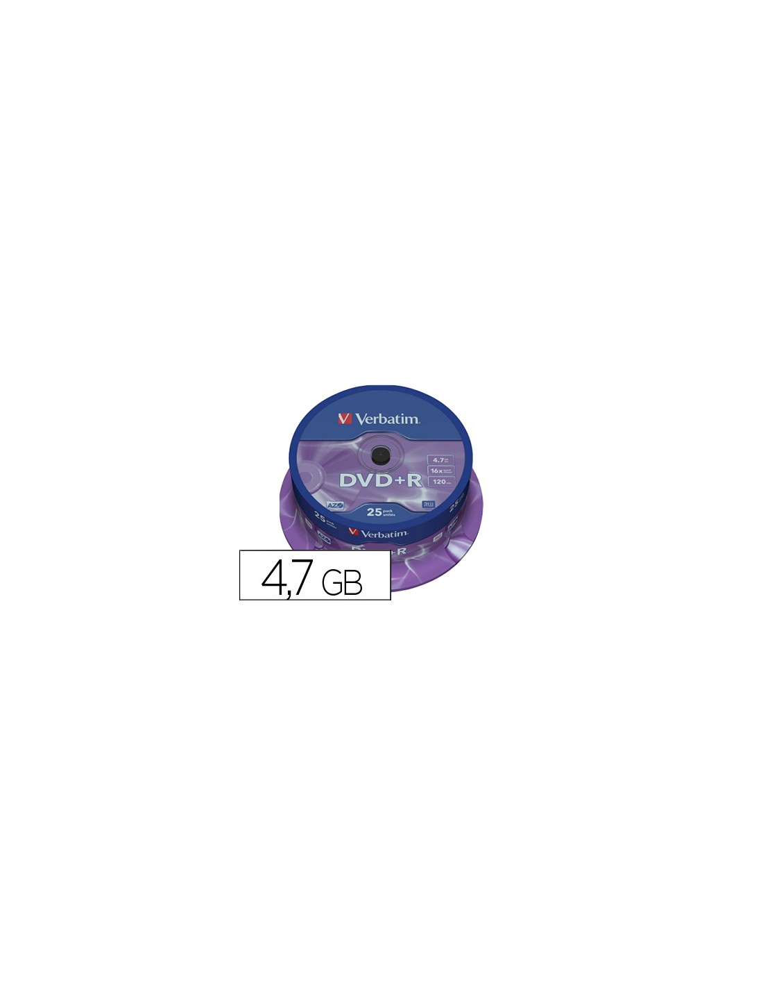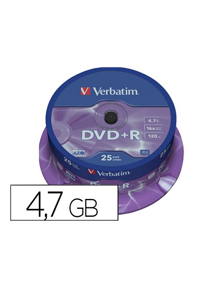 Dvd+r verbatim capacitat 4.7gb velocitat 16x 120 min tarrina de 25 unitats