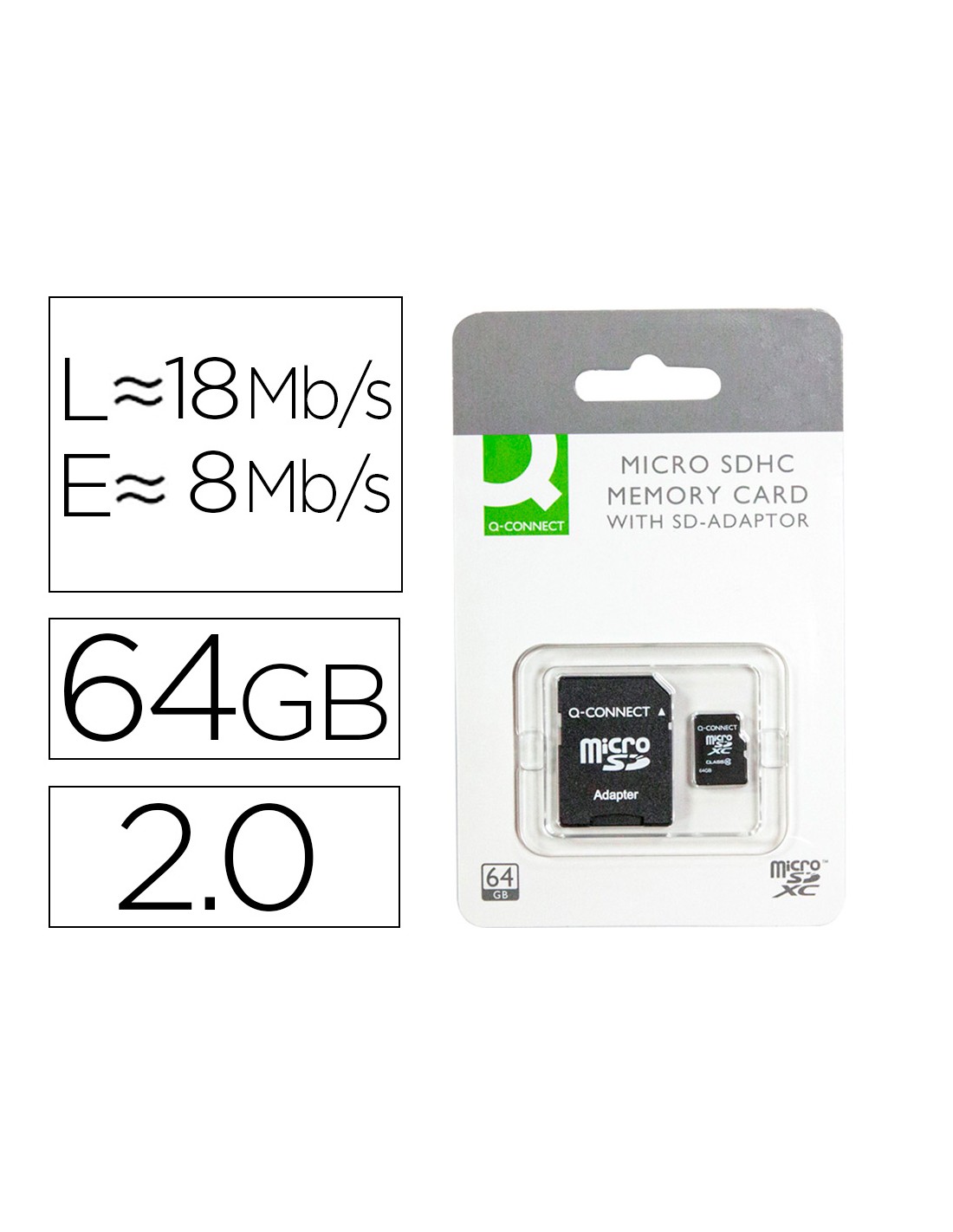 Memòria sd micro q-connect flash 64 gb classe 10 amb adaptador
