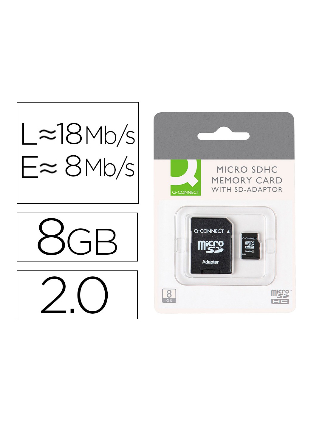 Memòria sd micro q-connect flash 8 gb classe 4 amb adaptador