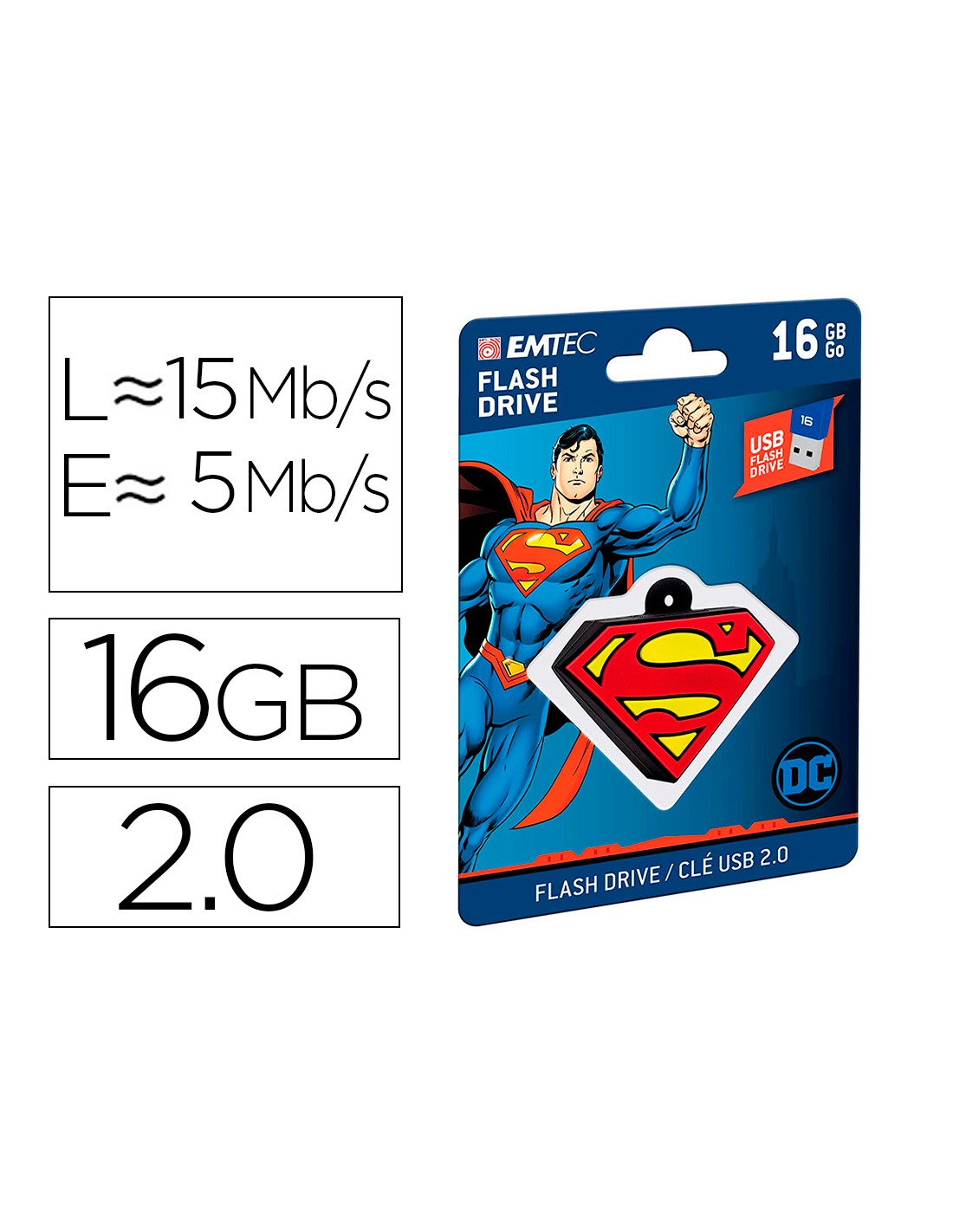 Memoria usb emtec flash 16 gb usb 2.0 collector superman