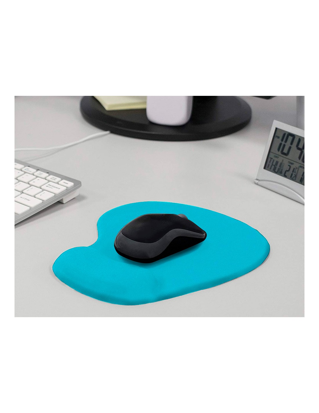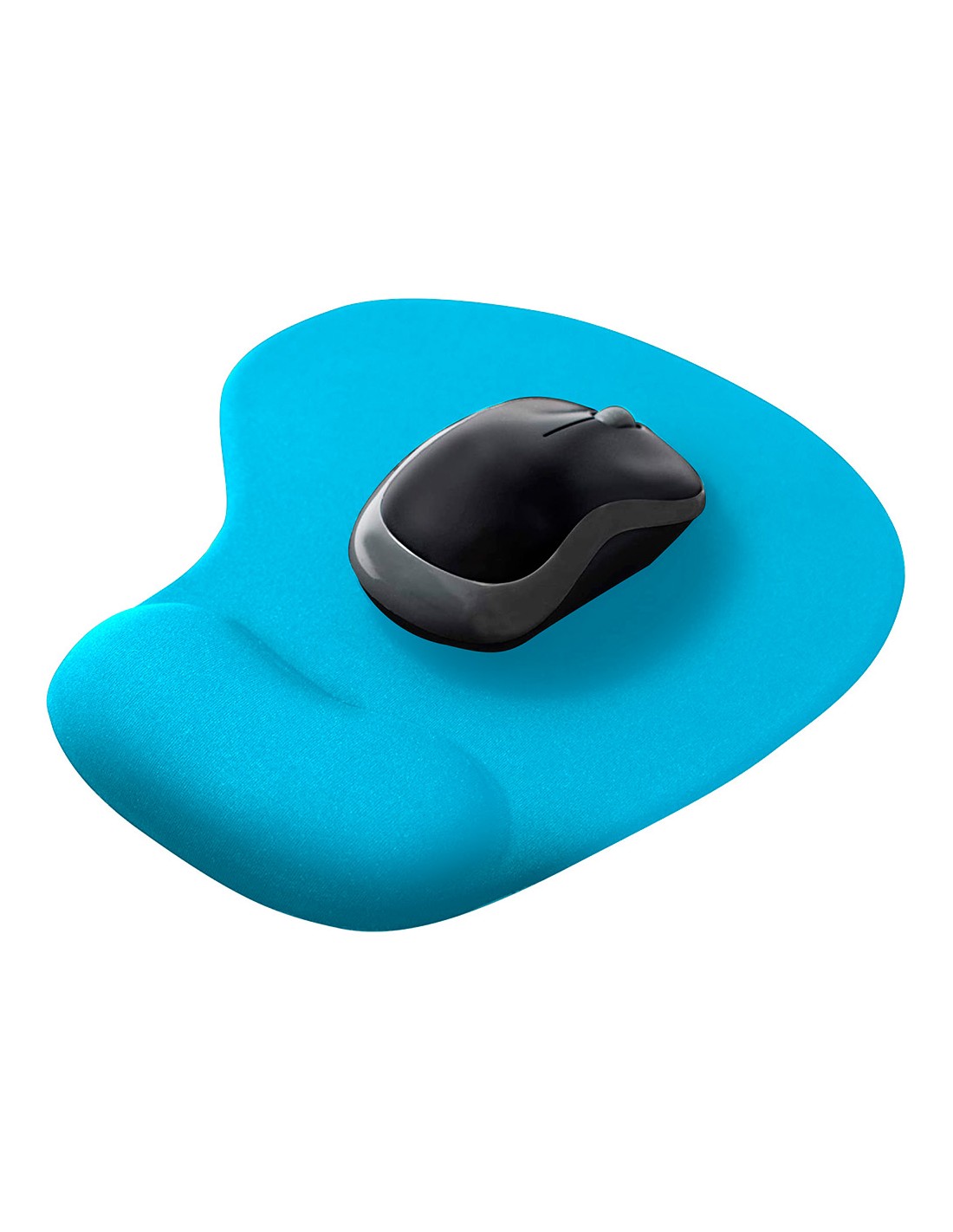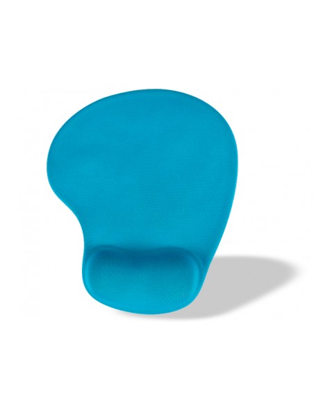 Estoreta de ratolí amb reposacanells, farcit de gel. Disseny ergonòmic amb superfície de roba i base antilliscant. Disponible en diversos colors.