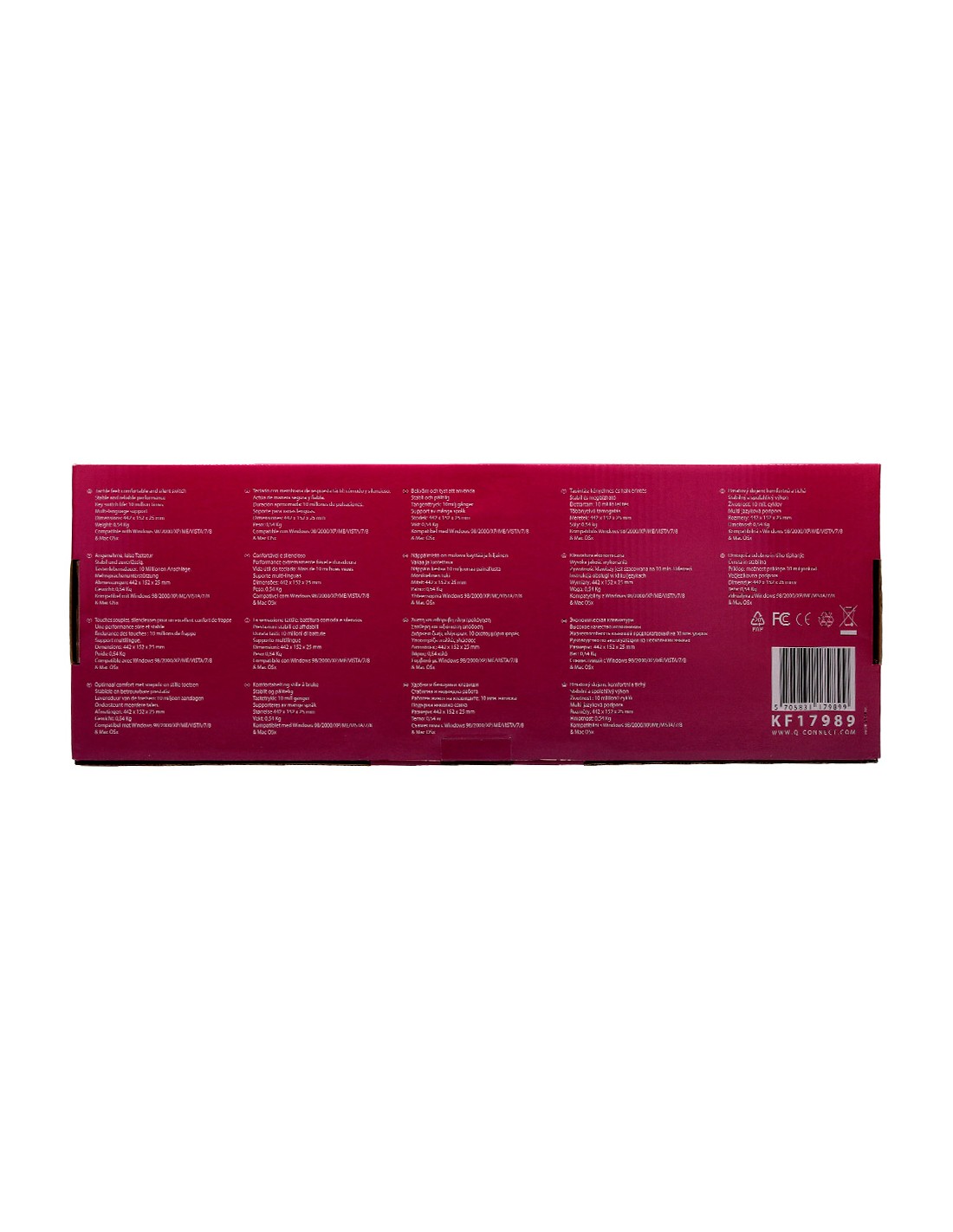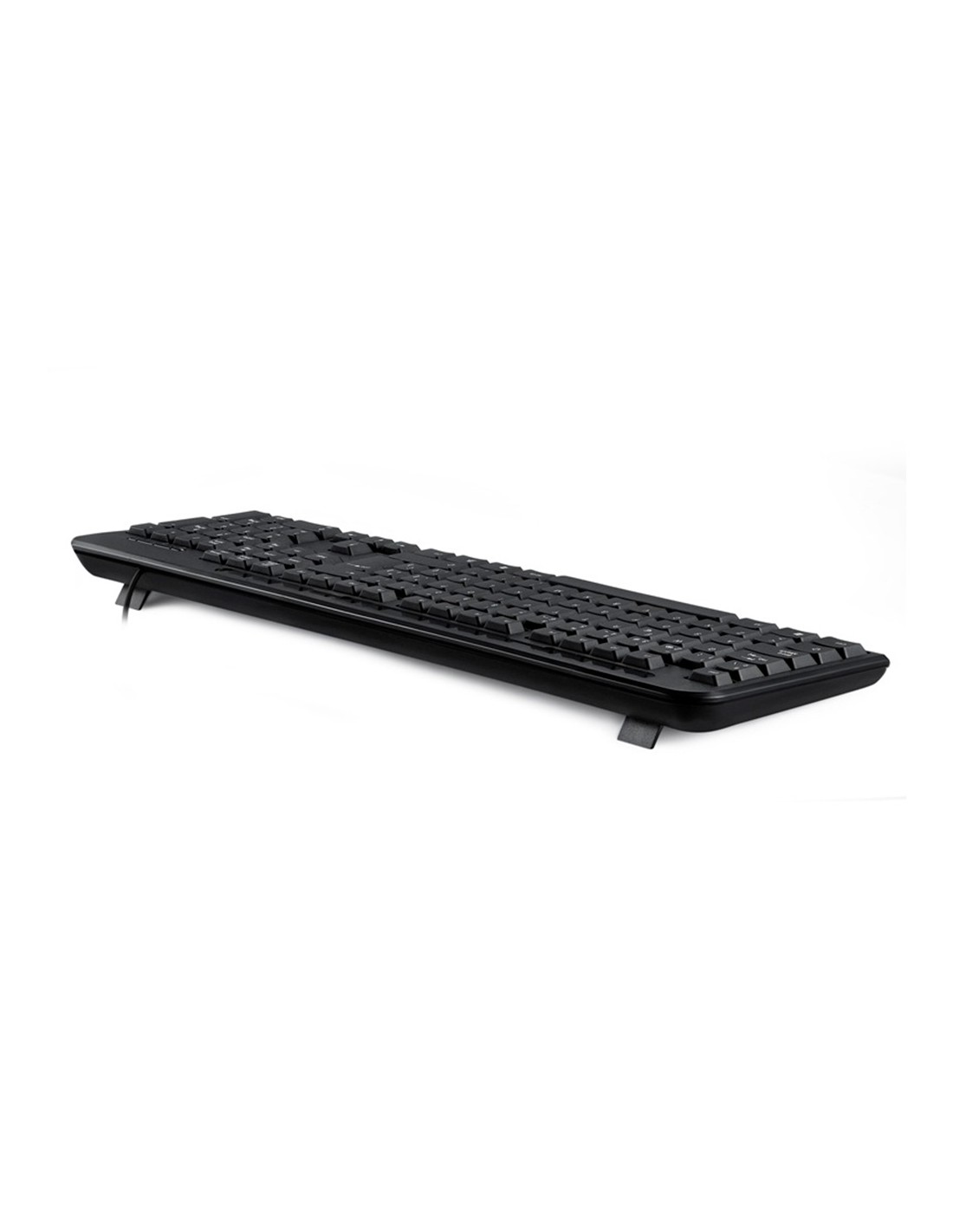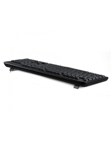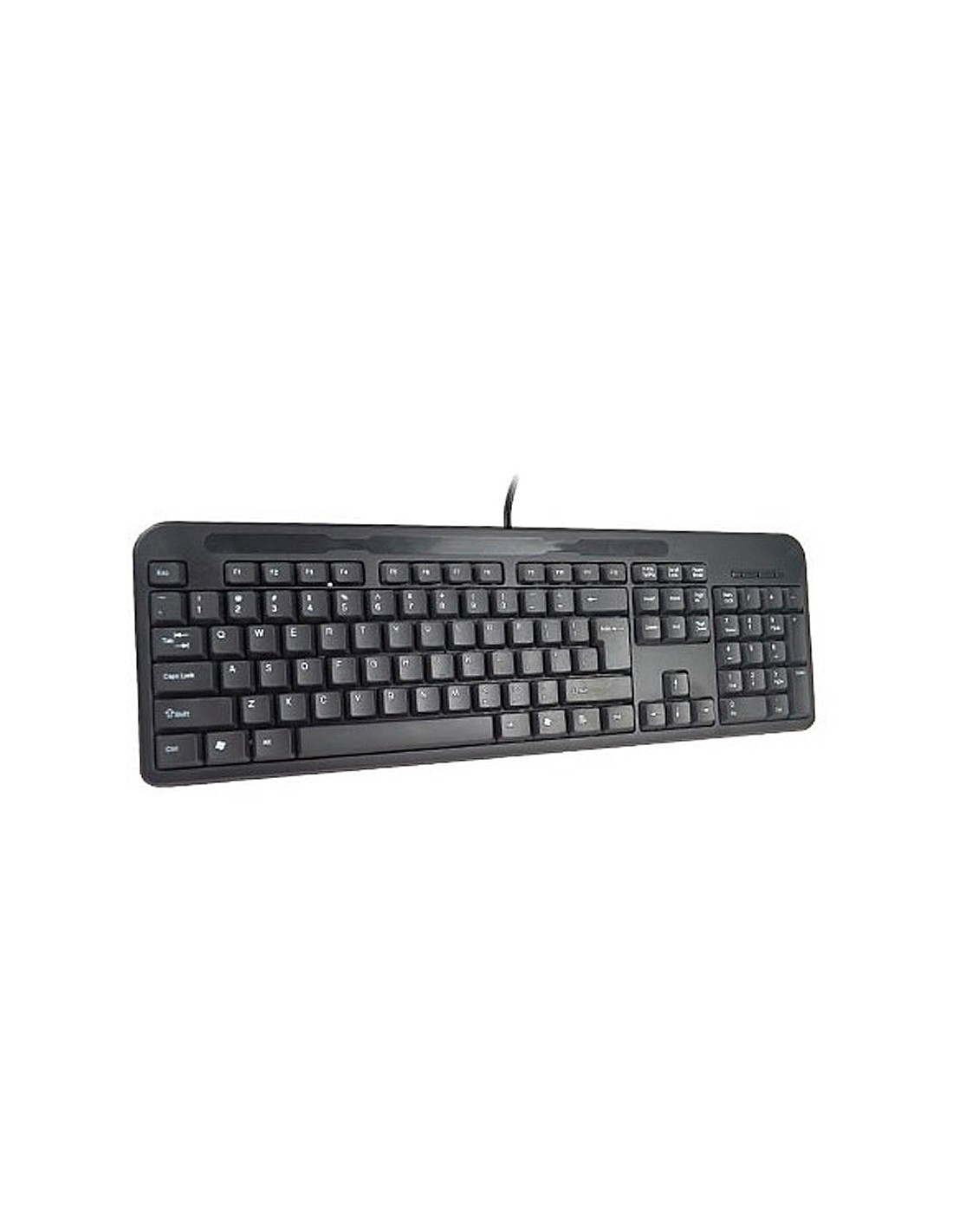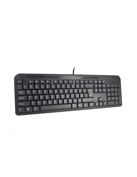 Teclat amb cable compatible amb Windows 95/98/NT/ME/2000/XP/7/8/VISTA. Color negre. Mides: 465 x 165 x 28 mm. Pes: 0,43 kg.