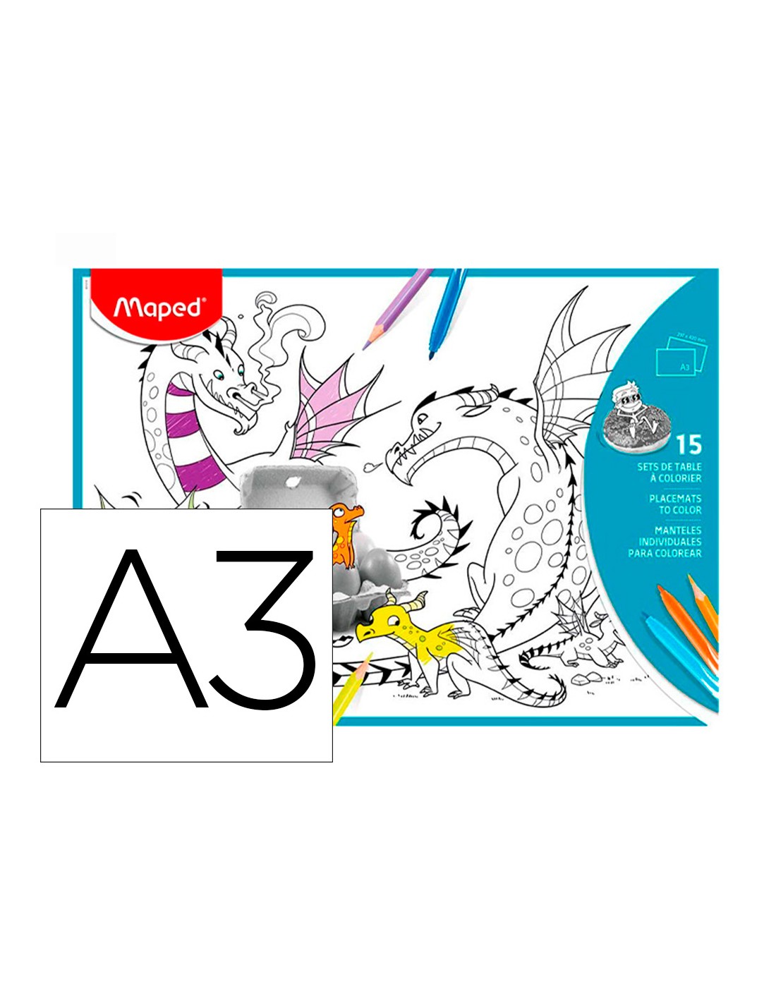 Mantel per a colorear maped individual din a3 pack de 15 unitats sortides