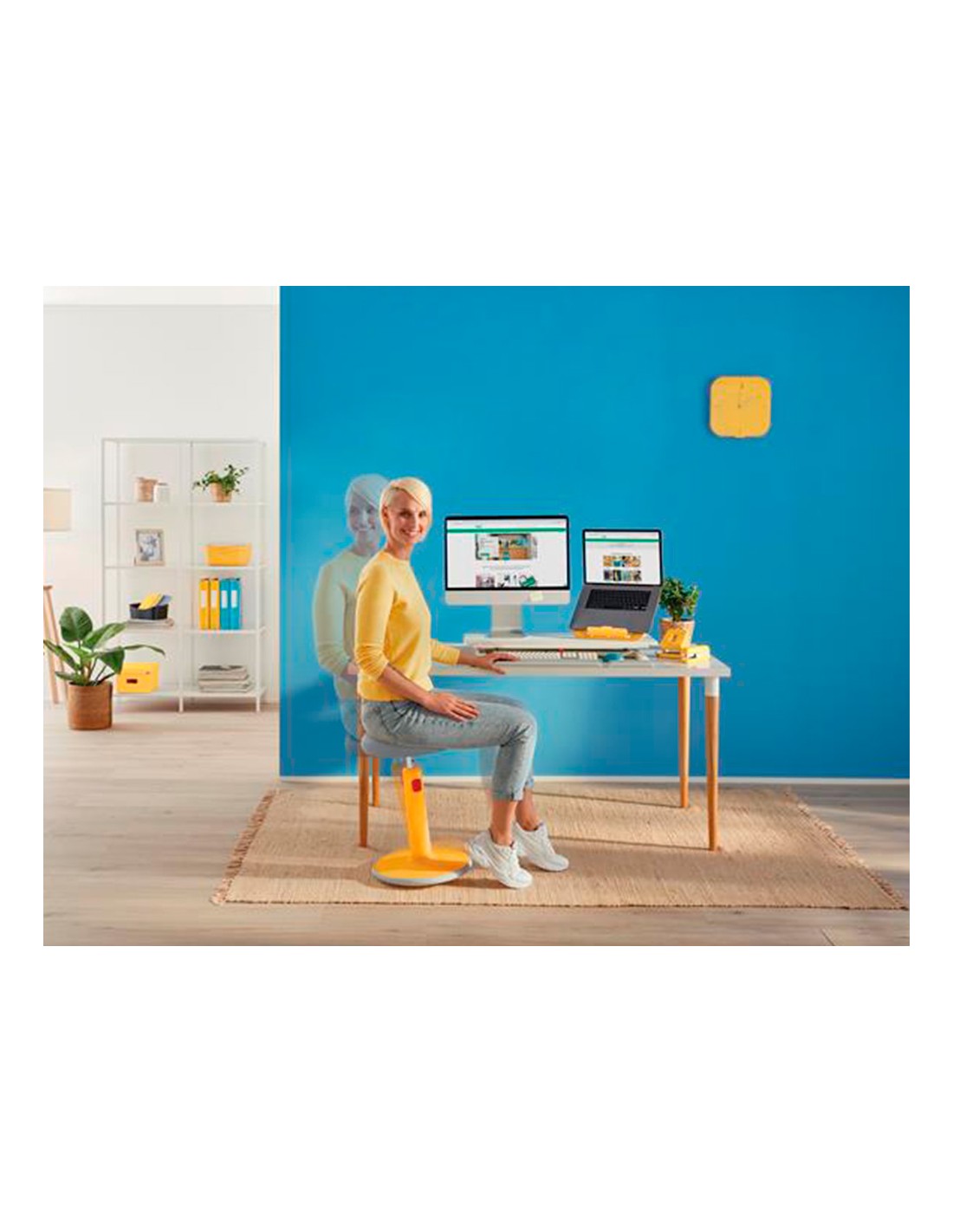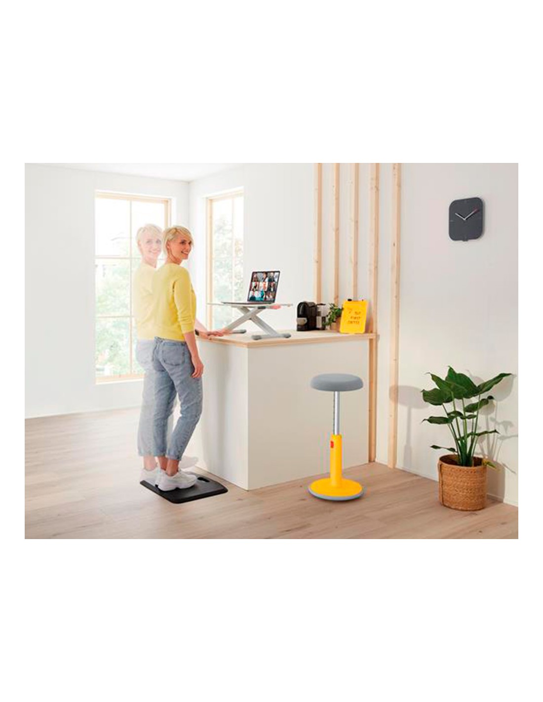 El tamboret LEITZ Ergo Active permet la flexibilitat de moure s entre estar assegut i dret mentre treballa, fomentant el moviment muscular, millorant la postura i augmentant els nivells d energia. Compte amb una base arrodonida per fomentar el moviment actiu girant i balancejant-te mentre treballa per enfortir la teva esquena. L alçada es pot ajustar fàcilment entre 45-79 cm i el tamboret es mantindrà fort i estable a qualsevol alçada. Còmode i pràctic, aquest tamboret ergonòmic té un seient d escuma transpirable, recobert de malla d aire 3D i una base antilliscant que no farà malbé el teu terra. Amb el seu disseny minimalista i colors d acabat mat, aquest tamboret elegant millorarà la salut i el benestar en crear sense esforç la configuració de treball activa perfecta. Combina l amb altres productes LEITZ Ergo per crear un espai de treball acollidor i flexible que et mantingui en moviment tot el dia.