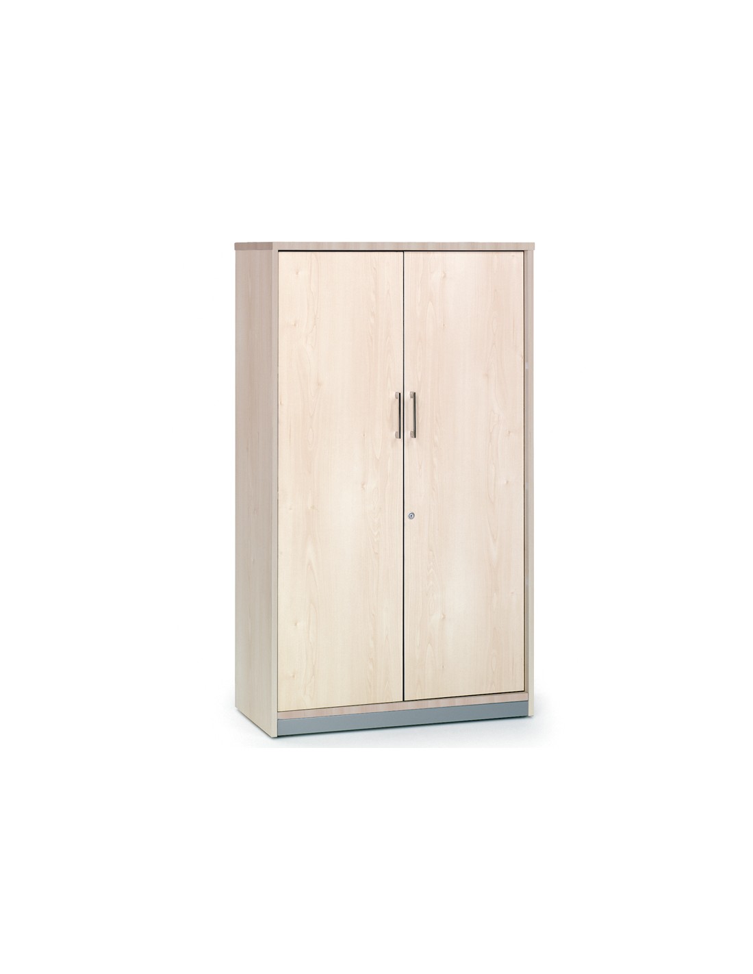 Armari de fàcil muntatge. Estructura en un 25% acer i un 75% poliestilè. Portes de polipropilè de 8 mm. Nanses i panys amb dues claus incloses. Capacitat per a 9 arxivadors de palanca. Pany amb tapa plegable per amagar-la.