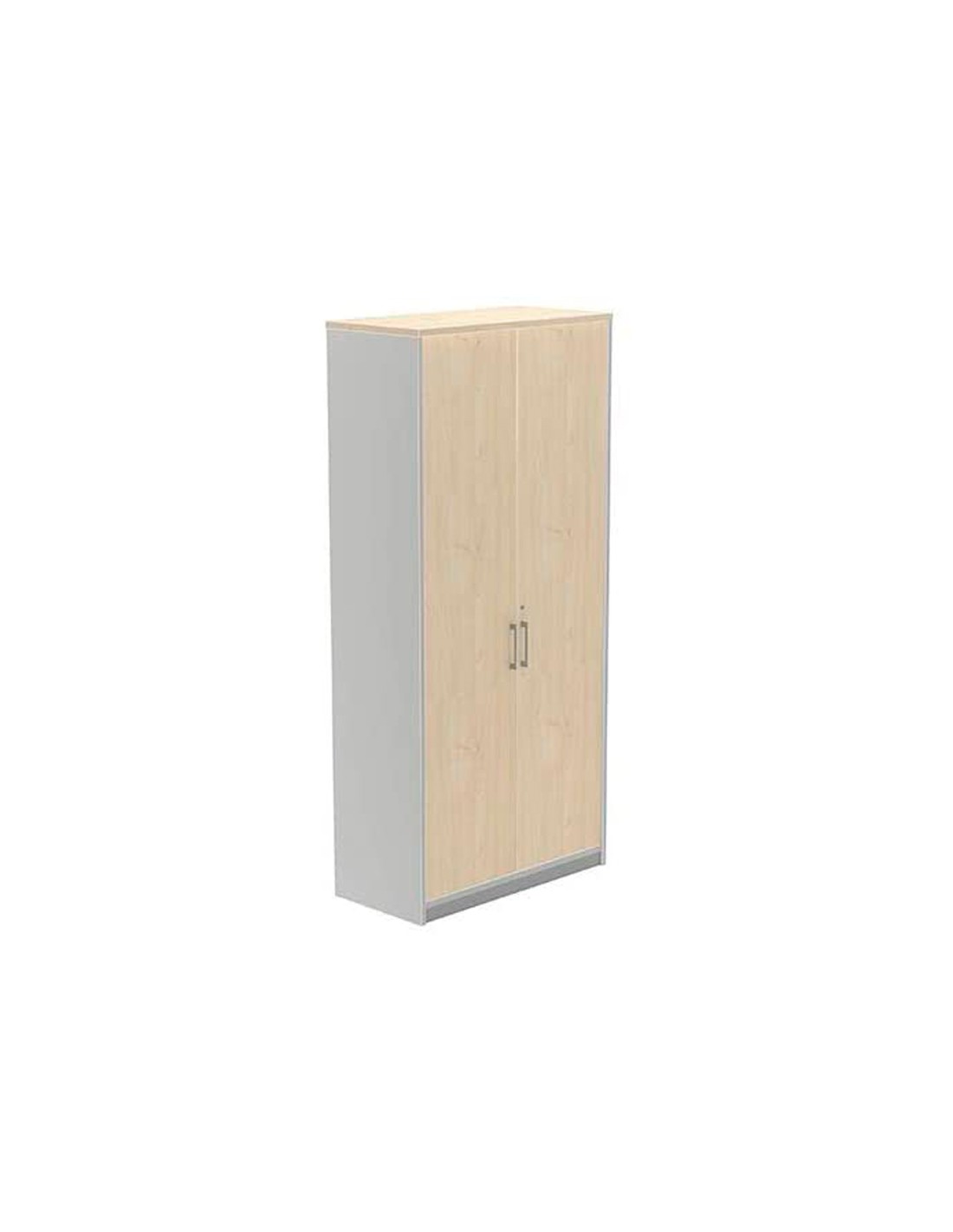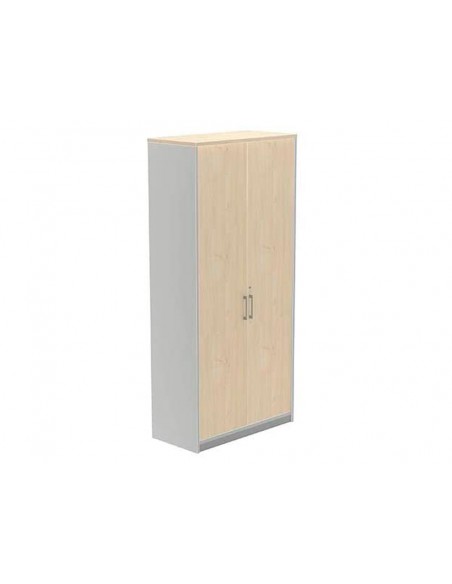 Armari de fàcil muntatge. Estructura en un 25% acer i un 75% poliestilè. Portes de polipropilè de 8 mm. Nanses i panys amb dues claus incloses. Capacitat per a 9 arxivadors de palanca. Pany amb tapa plegable per amagar-la.