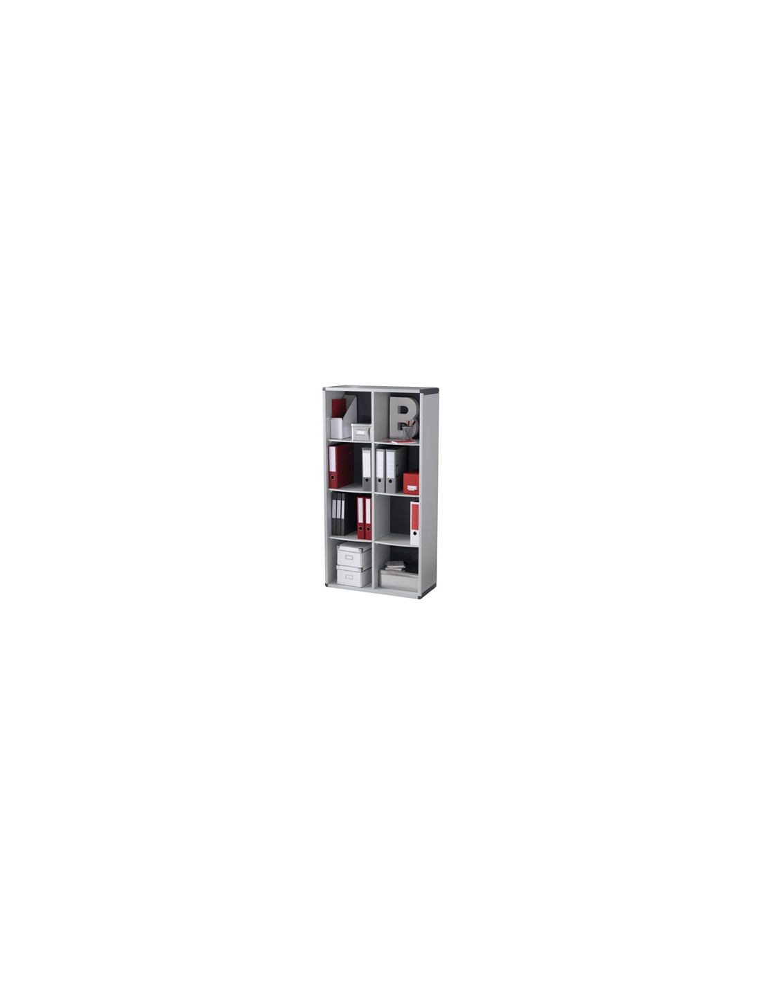 Moble biblioteca per mòduls per a classificació horitzontal o vertical. Fabricat amb poliestirè d alt impacte en color gris/gris antracita. Amb 8 caselles. Mides 79 x 151,8 x 33 cm.