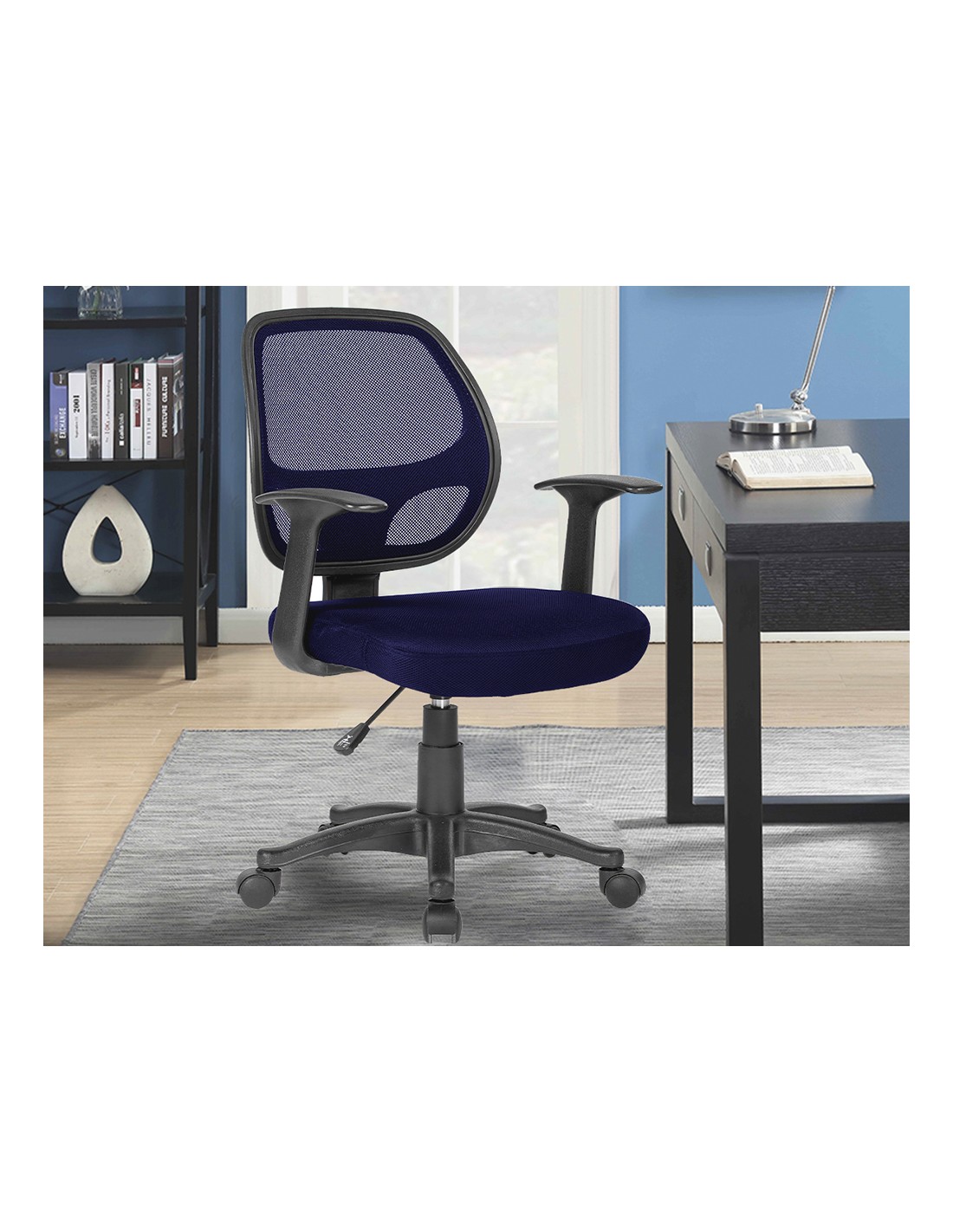 Cadira giratòria amb mecanisme regulable en alçada. Seient i respatller entapissats en malla. Pistó cilindre de gas per a regulació d alçada. Base niló negre. Alçada de la cadira 87 + 12 cm. Alçada del respatller 46 cm. Alçada del seient 44-56 cm. Ample del seient 46 cm. Profunditat del seient 59 cm. Braços fixos en polipropilè negre. Rodes niló. 6 cm Ø. Hores dús 5 hores. Pes de la cadira/pes màxim suportat 9 kg/120 kg.