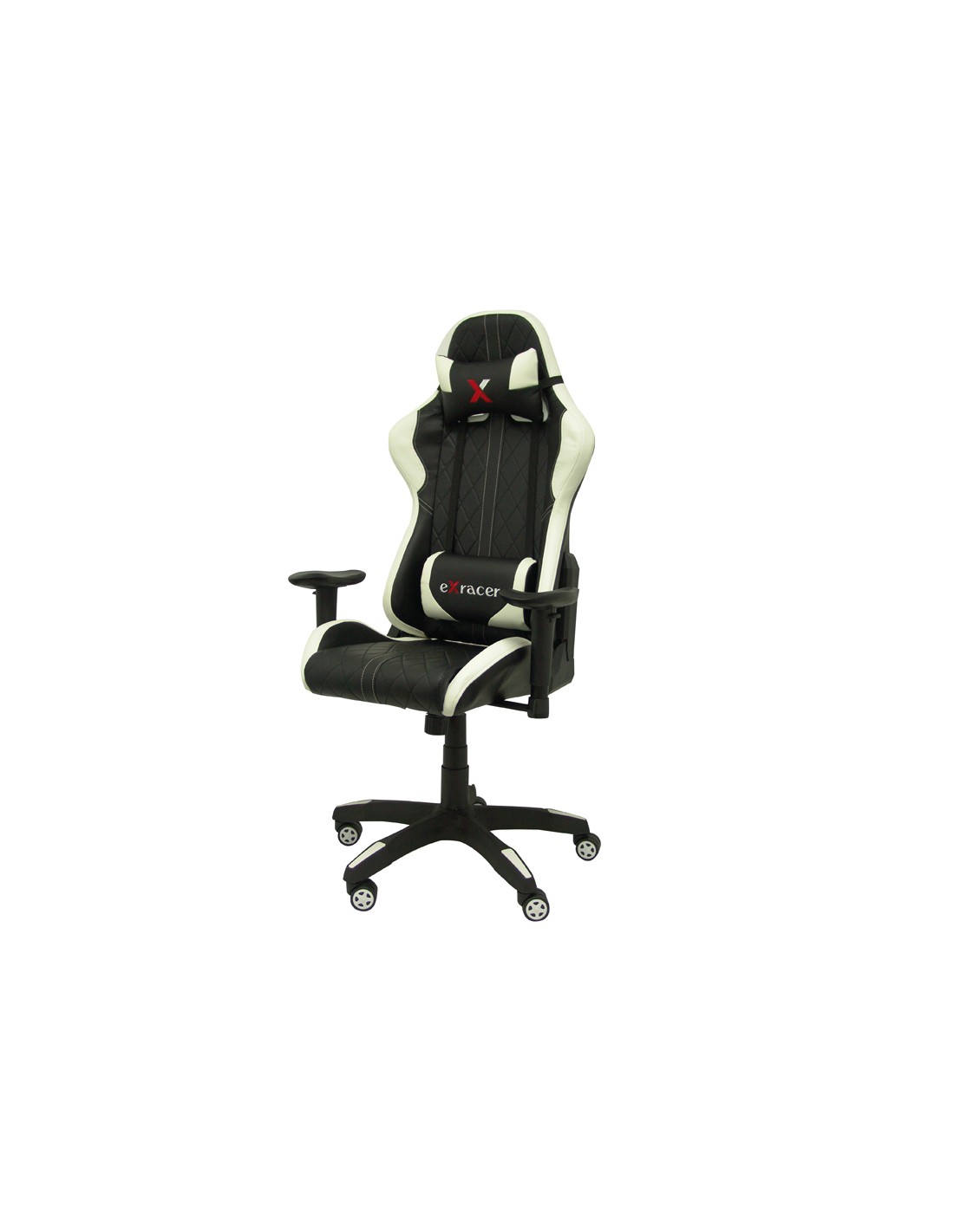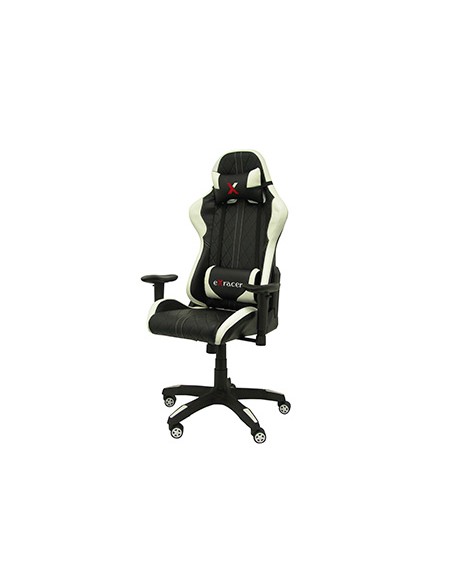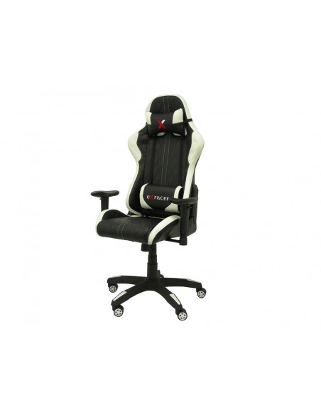 Amb mecanisme basculant, regulable en alçada. Giratòria 360°. Seient i respatller: en material suau símil pell que s'assembla a un cotxe esportiu. Estructura còmoda. Suport lumbar i capçal amb coixí ajustable. Color negre amb detalls blancs. Pistó: cilind