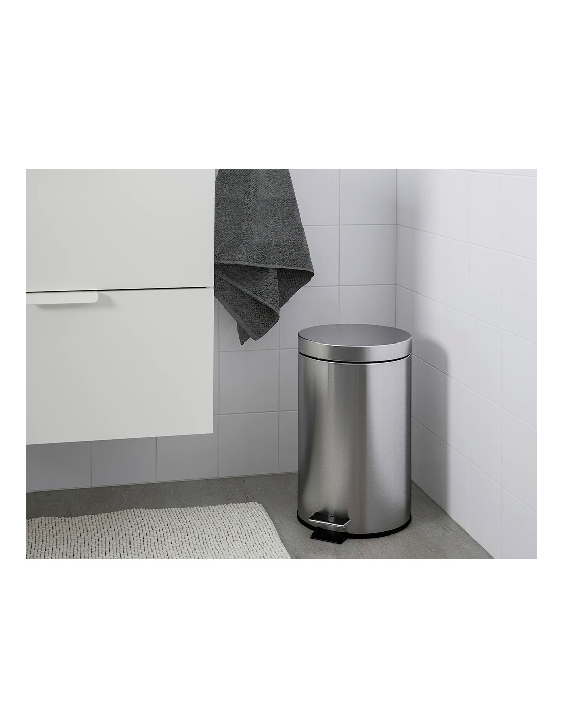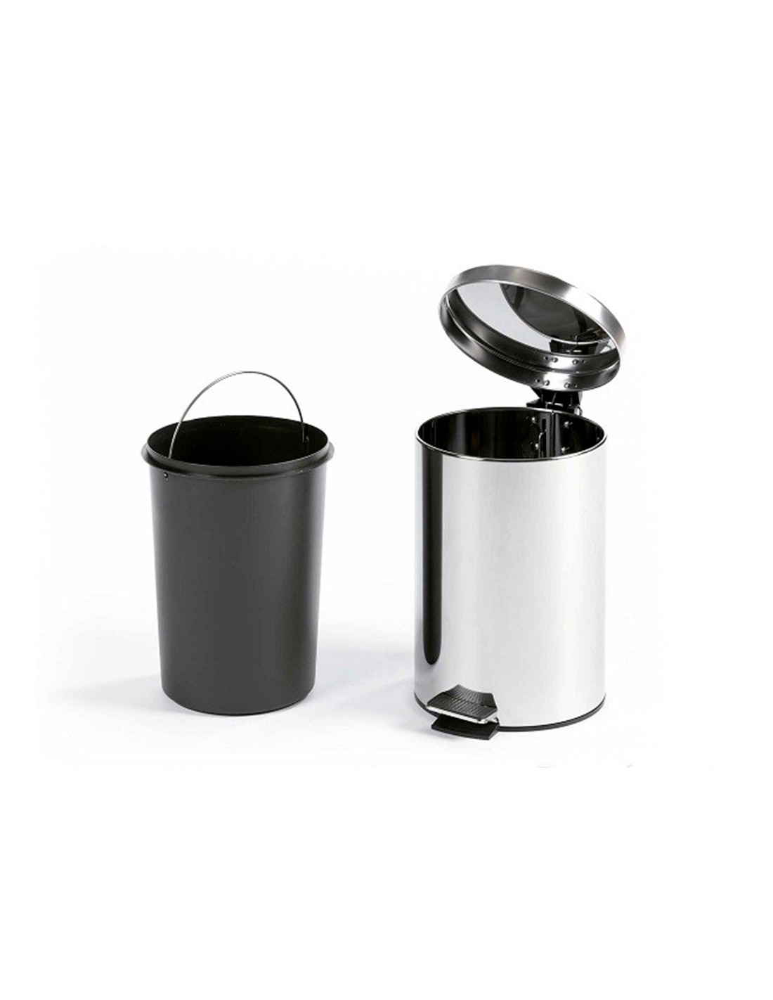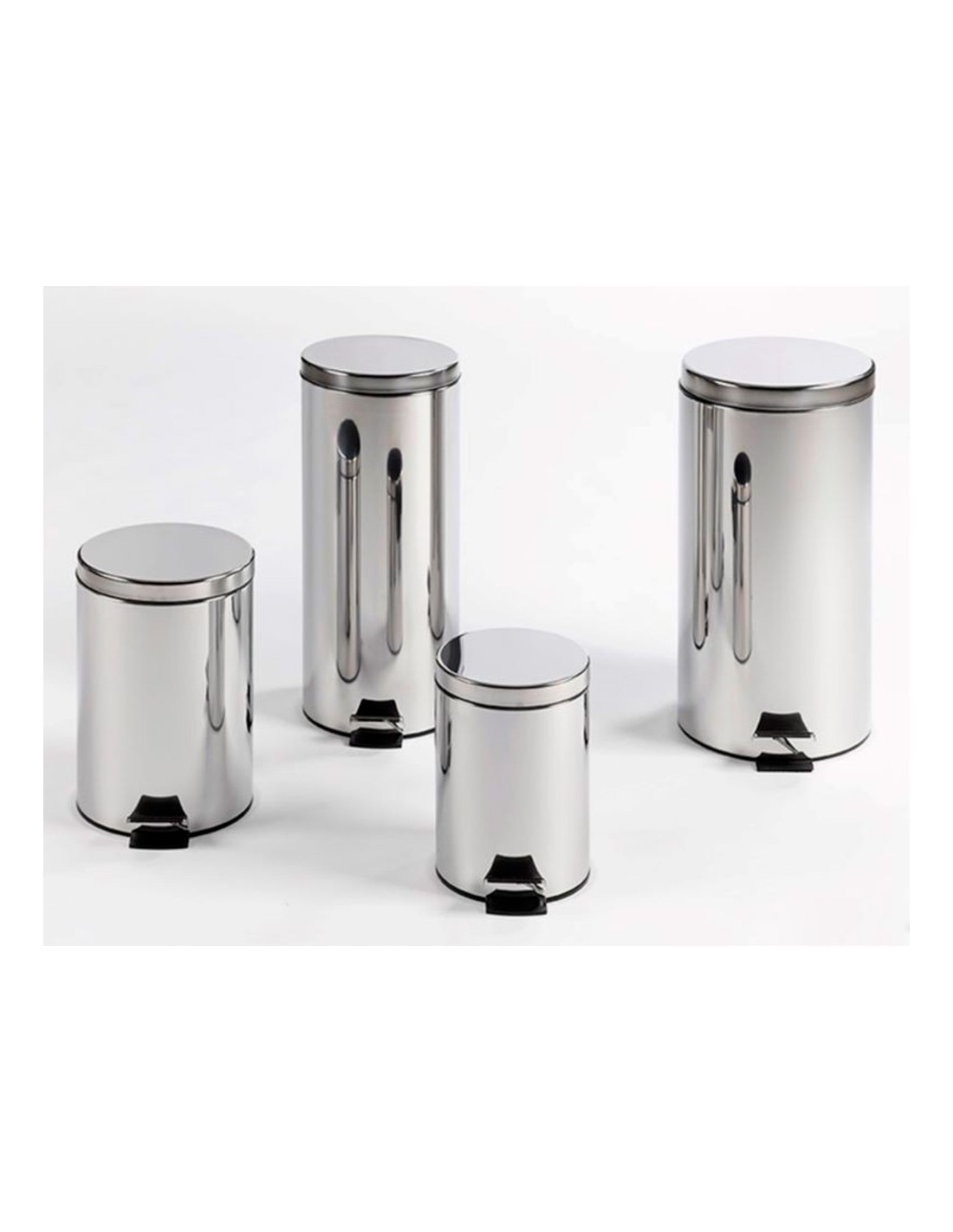 Paperera fabricada en metall amb acabat mirall. Amb pedal per a més comoditat.
