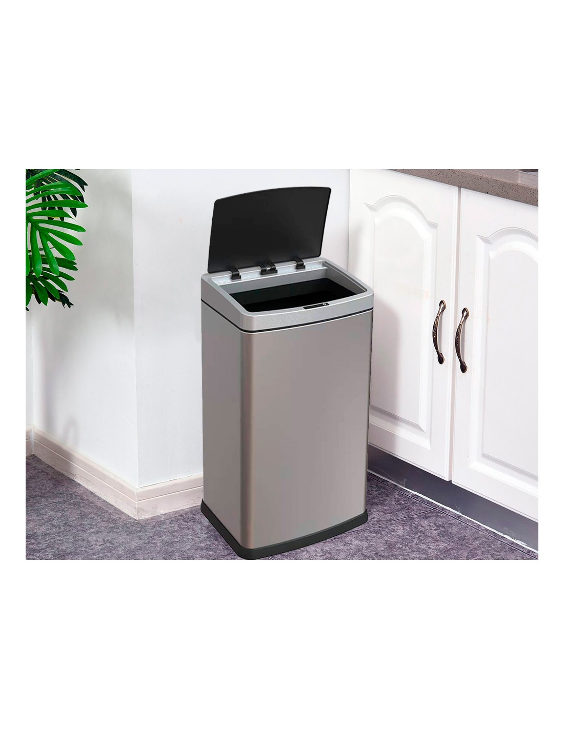 Paperera fabricada en metall amb acabat mirall. Amb sistema dobertura automàtica que detecta els moviments. Resistent, higiènic i segur. Funciona amb piles. Piles no incloses. Ideal per a oficines i restaurants.