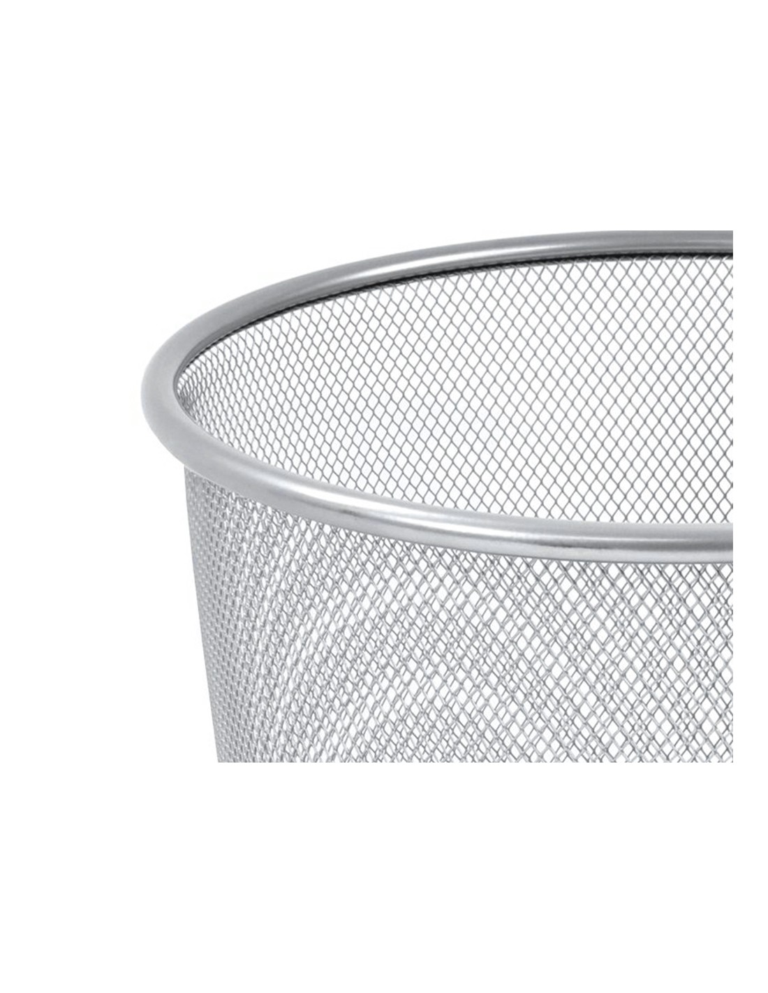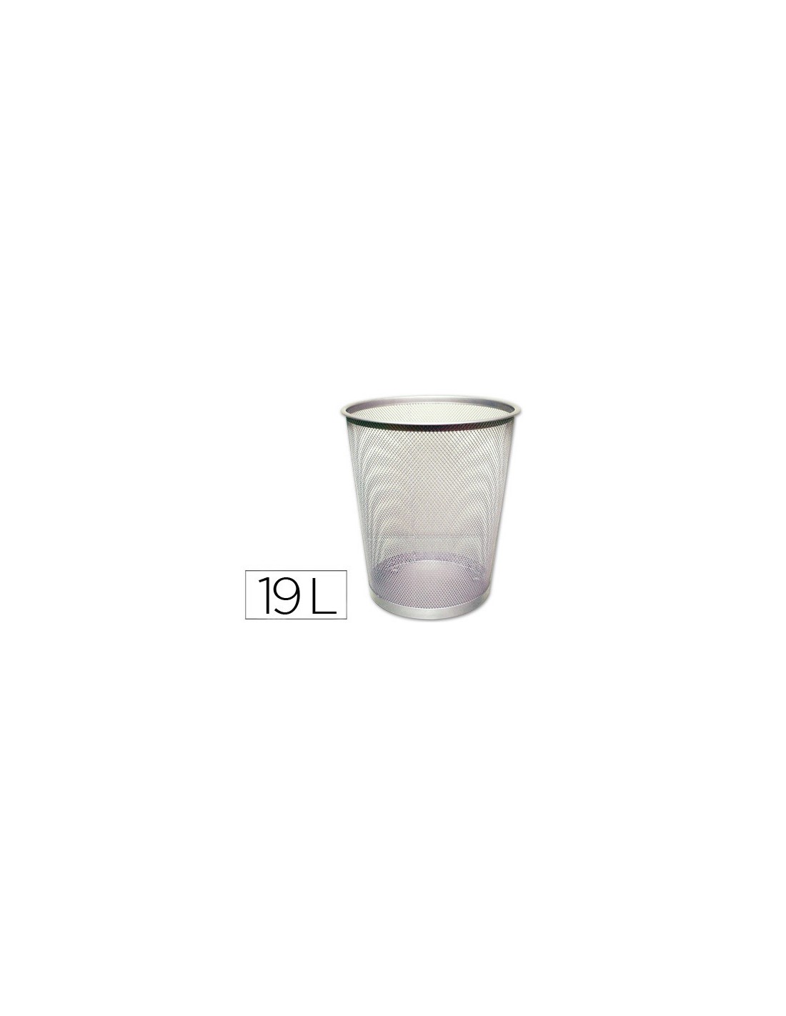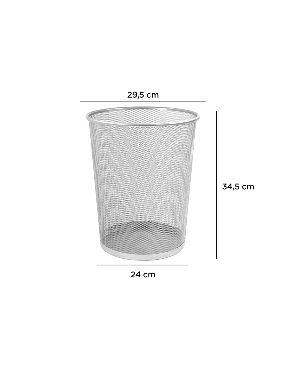 Paperera de reixeta metàl·lica amb forma circular. Capacitat: 19 litres. Mides: Ø 24 x 34,5 x Ø 29,5 cm.