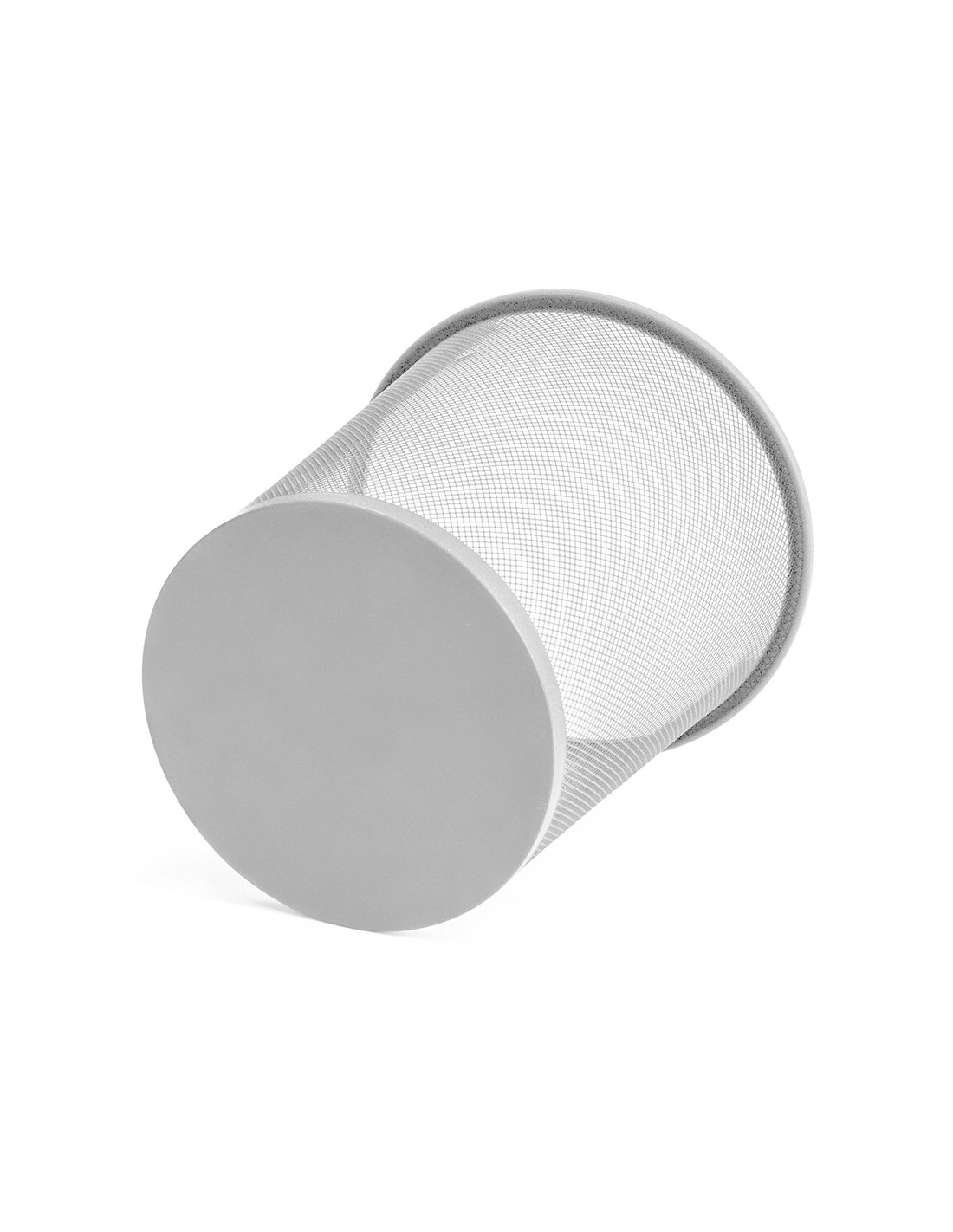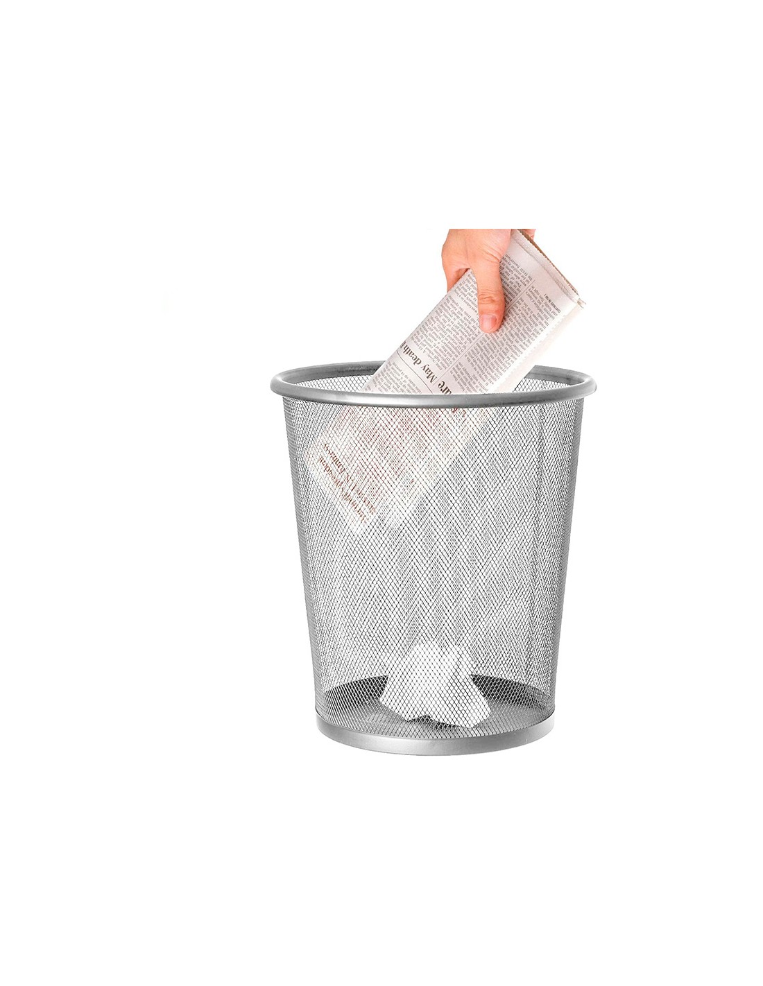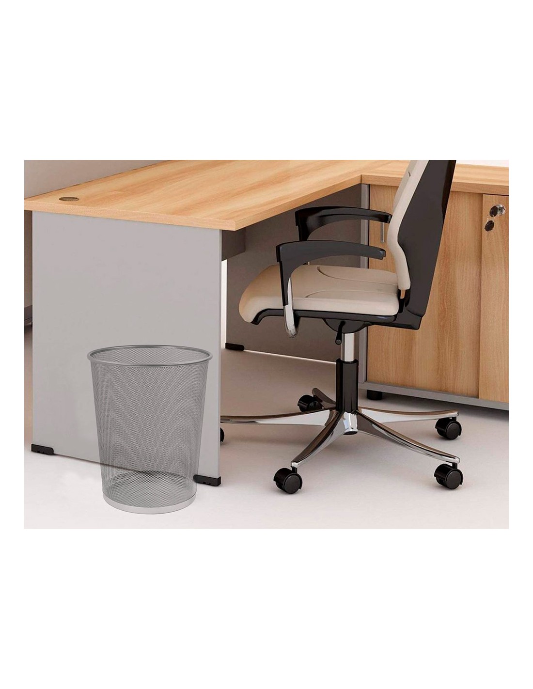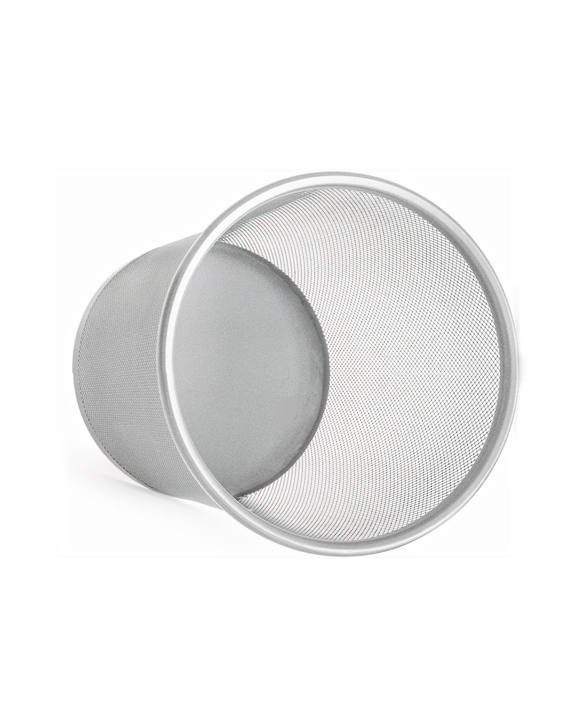 Paperera de reixeta metàl·lica amb forma circular. Capacitat: 19 litres. Mides: Ø 24 x 34,5 x Ø 29,5 cm.
