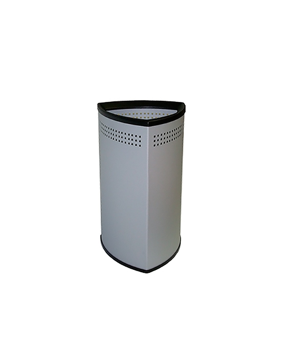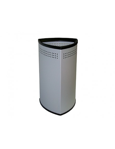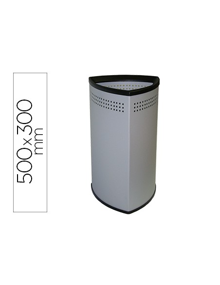 Paraigüer metàl·lic triangular. Fabricat amb acer inoxidable. Per paraigües llargs. Color gris. Mides: Ø 30 x 50 cm.