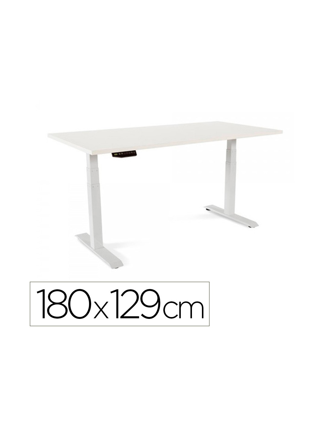 Taula rocada regulable en alçada electricament fins 129 cm estructura d'acer tauler 180 cm color blanc