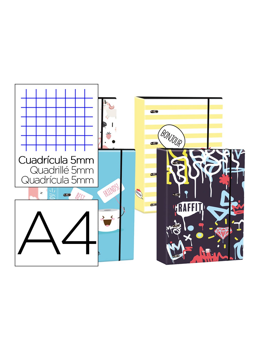Carpeta liderpapel din a4 forrada amb recanvi 120 fulls 80 gr 5 mm 4 an. rodones 40 mm tancament goma