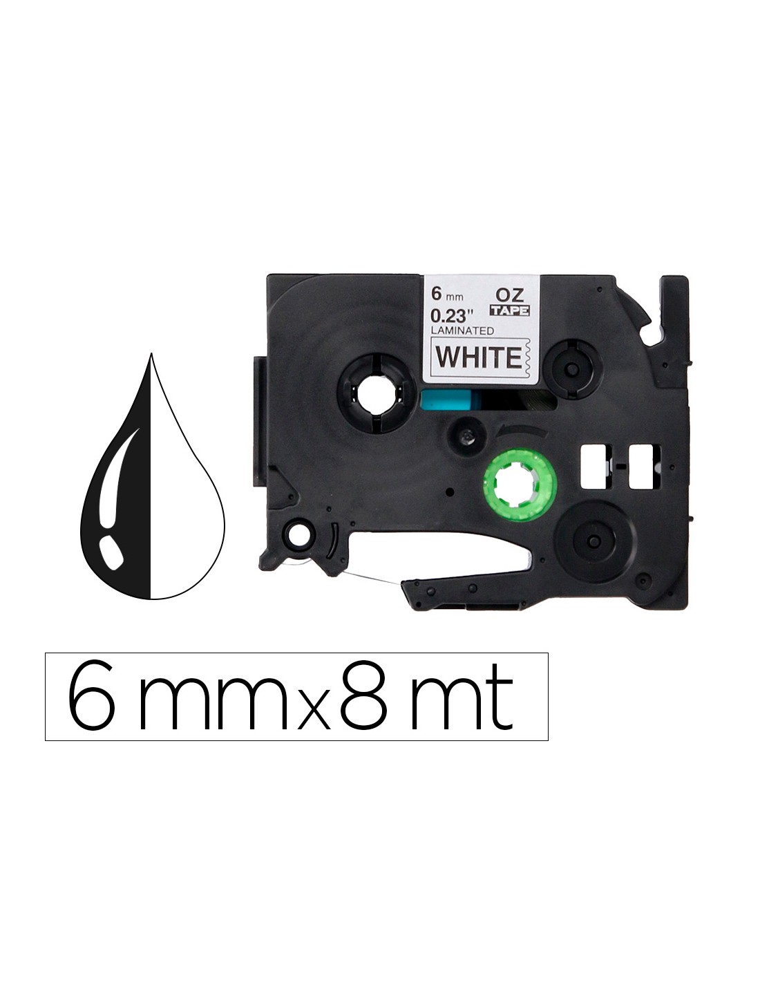 Cinta q-connect tze-211 blanc-negre 6mm longitud 8 mt