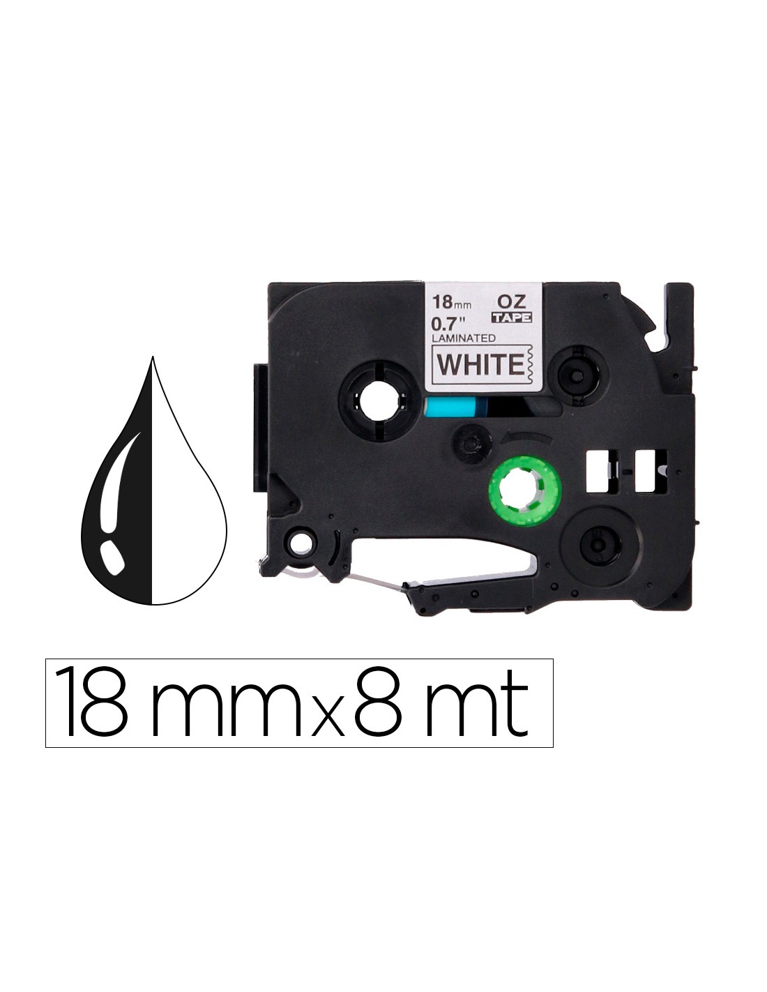Cinta q-connect tze-241 blanc-negre 18mm longitud 8 mt