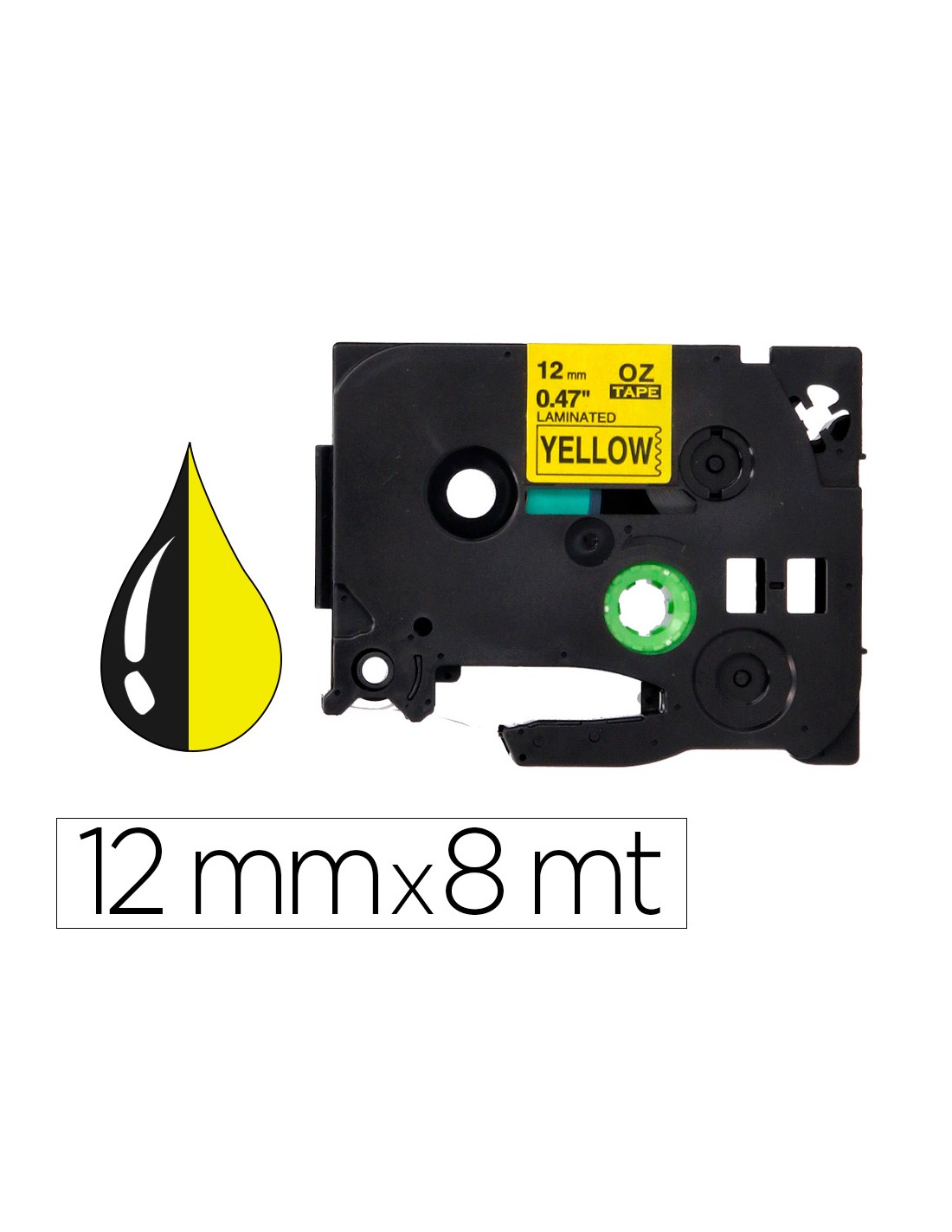 Cinta q-connect tze-631 groc-negre 12mm longitud 8 mt
