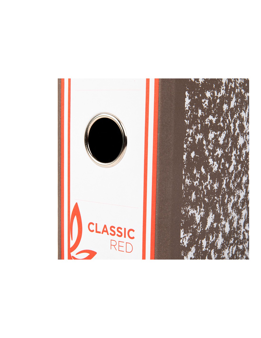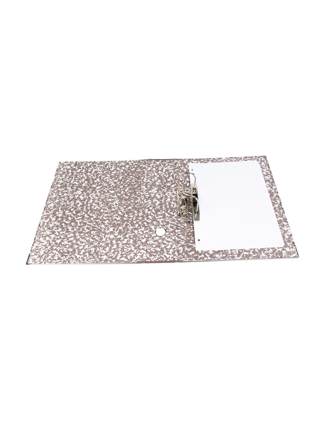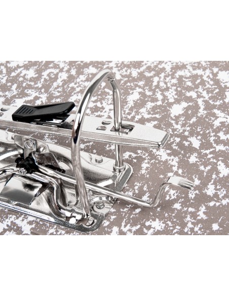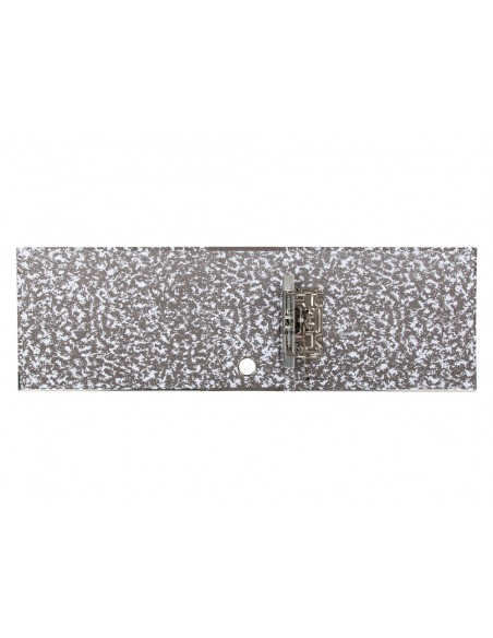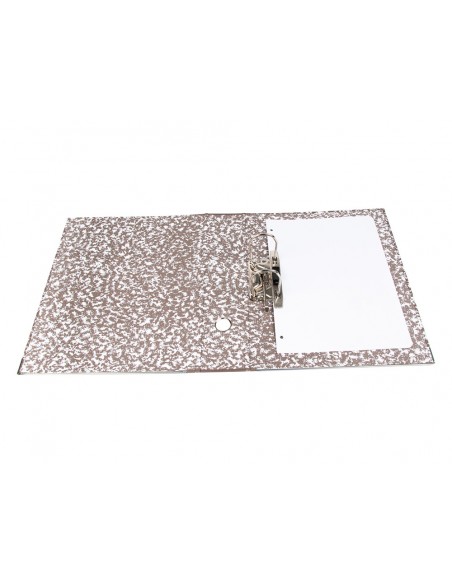 Arxivador de cartró entrecolat de 1,9 mm de gruix folrat interior i exterior. Mecanisme de palanca niquelat de 75 mm, compressor metàl·lic, ollao i cantoneres llargues. Llom ample. Sense índex, caixetí opcional. Ample de llom: 80 mm.