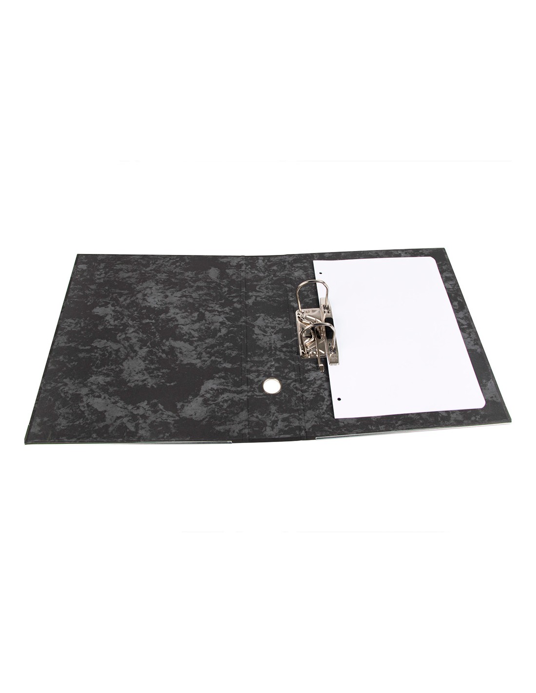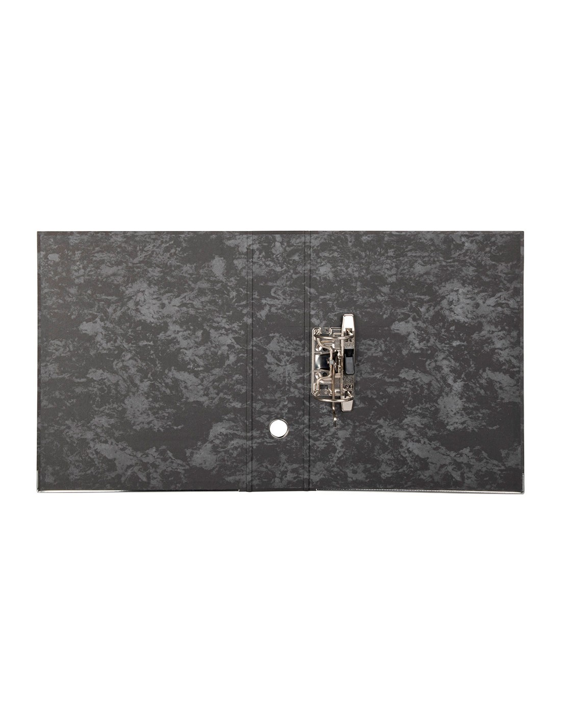 Arxivador de cartró entrecolat de 1,9 mm de gruix folrat interior i exterior. Mecanisme de palanca niquelat de 75 mm, compressor metàl·lic, ollao i cantoneres llargues. Llom ample. Sense índex, caixetí opcional. Ample de llom: 80 mm.