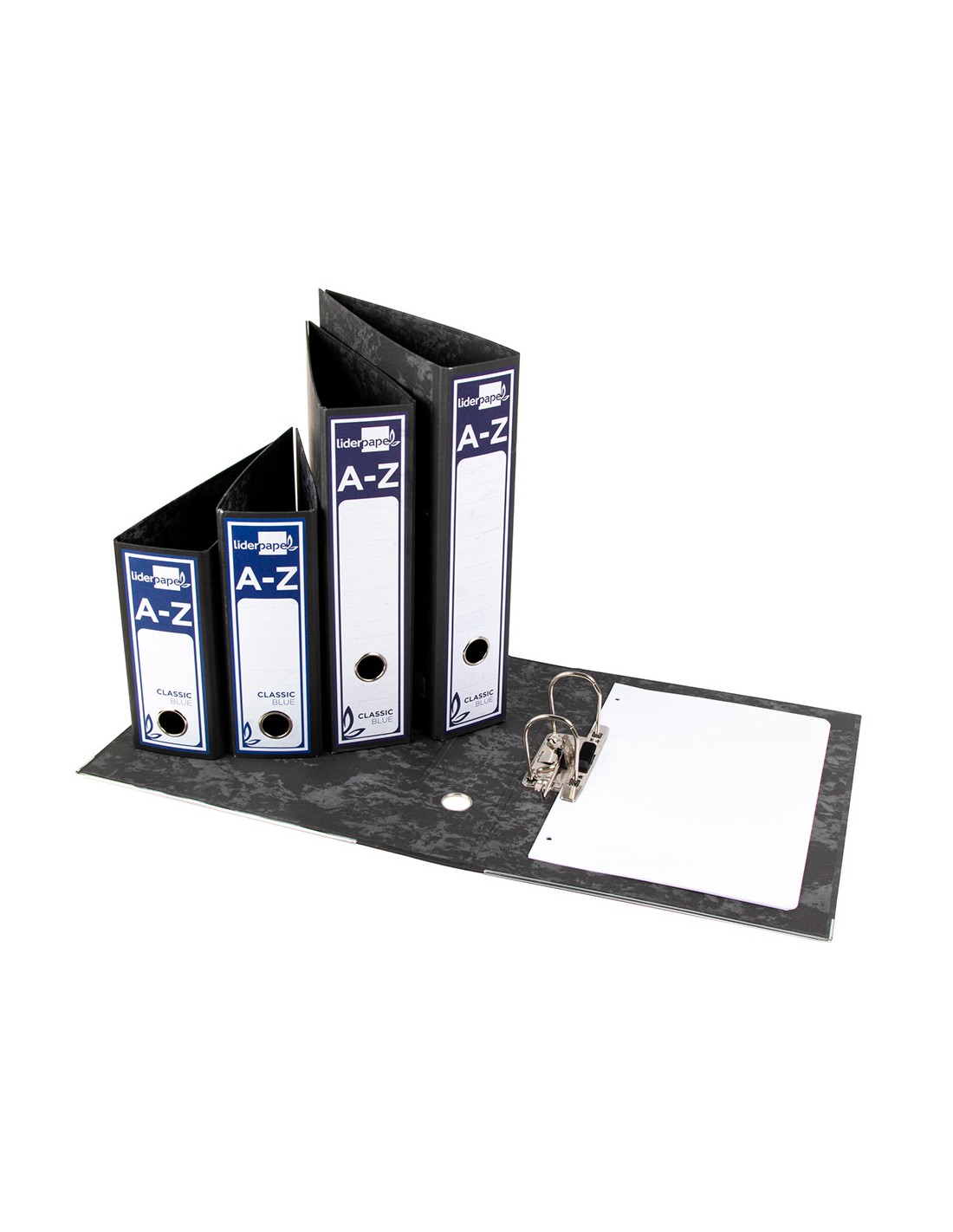 Arxivador de palanca liderpapel foli classic blue cartró entrecolat sense rado llom 80mm negre compressor metall
