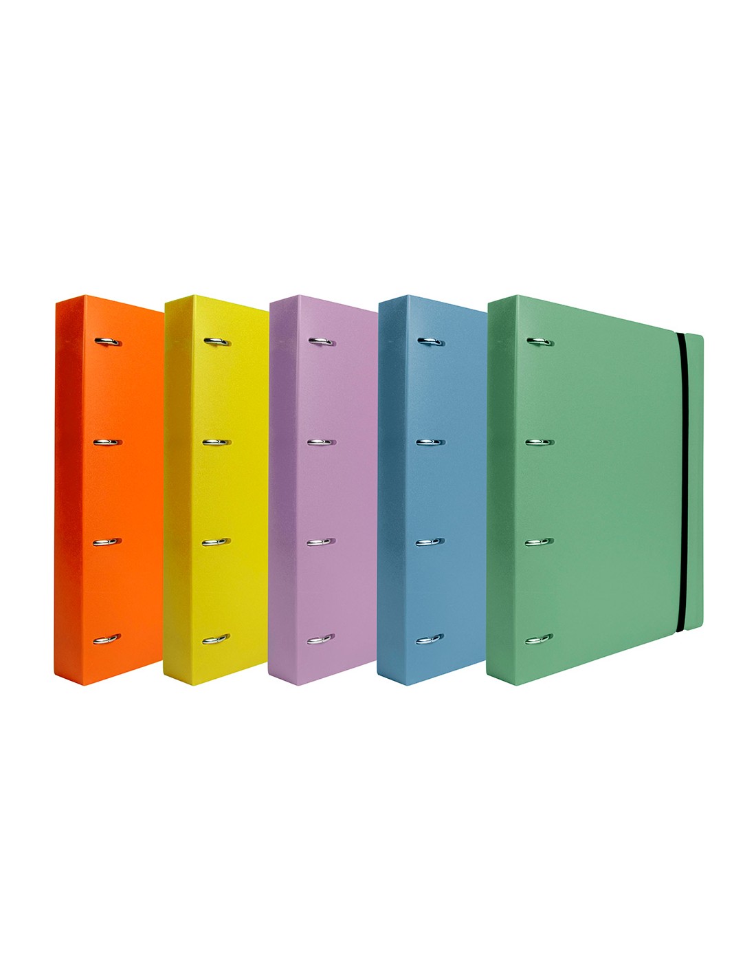 Carpeta amb recanvi de 4 anelles mixtes, fabricada en polipropilè de 1000 micres. Tancament amb gosa del mateix color. Amb ranures per a anelles. Paper interior de 80 g/m² amb quadricula 5 x 5 mm i 4 forats. 100 fulles.