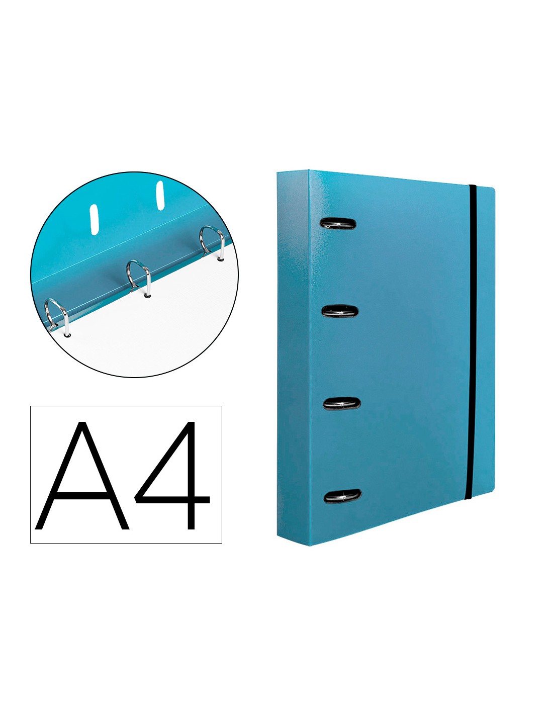 Carpeta amb recanvi liderpapel a4 quadre 5mm 100 fulls 80g polipropilè 4 anelles mixtes 25mm celest