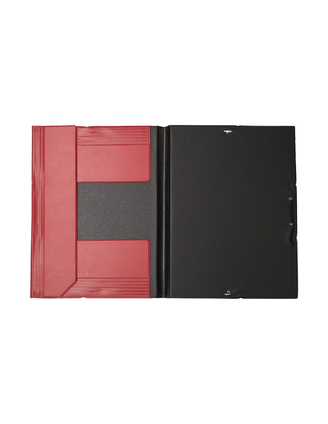 Carpeta fabricada amb cartró folrat amb PVC soldat unicolor. 3 mm de gruix. Tancament amb gomes. Llom flexible. Grandària foli. Mides: 240 x 335 mm.