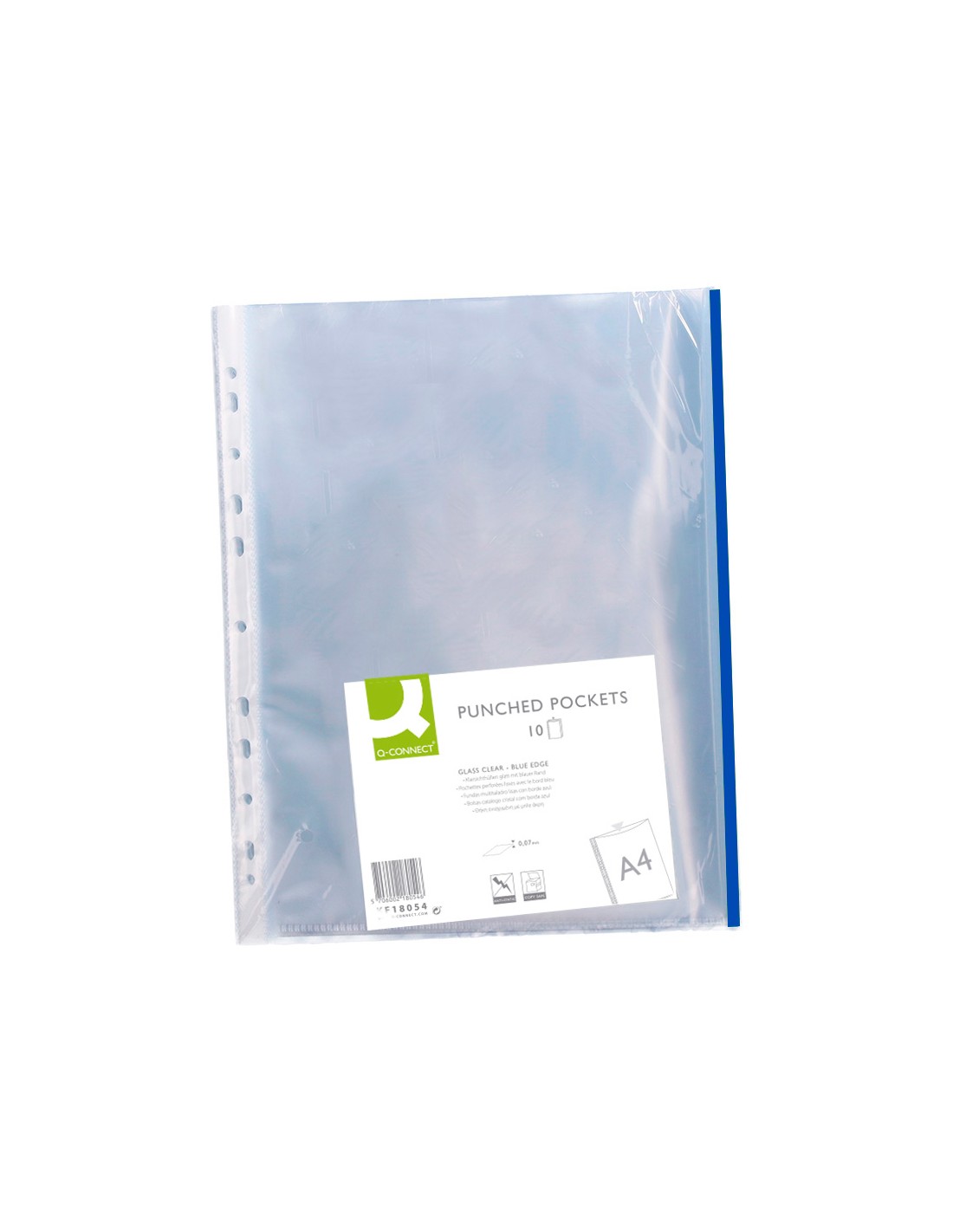 Funda multitaladre q-connect din a4 70 mc pp vidre amb bord blau bossa de 10 unitats