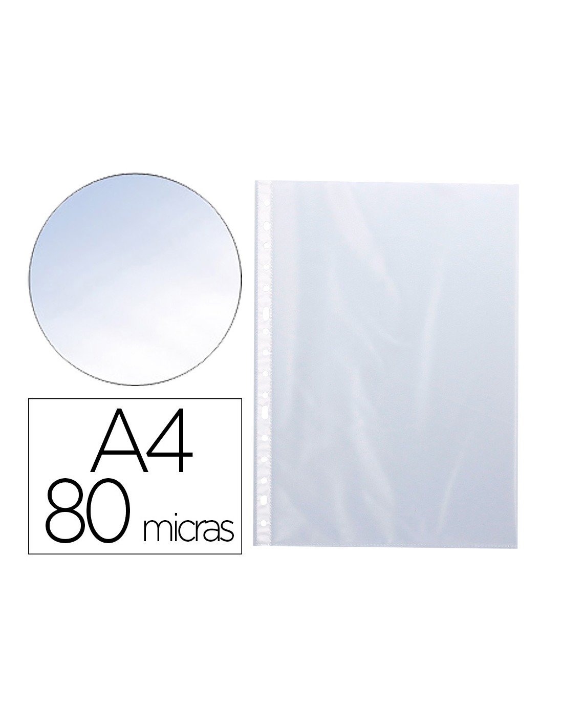 Per a protecció i arxiu de documents. Fabricada amb polipropilè transparent no adherent. 16 forats. Grossor 80 micres. Grandària foli.