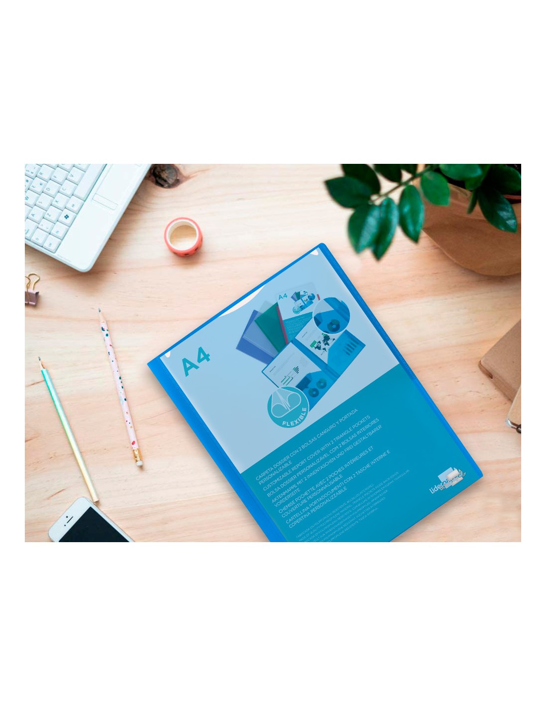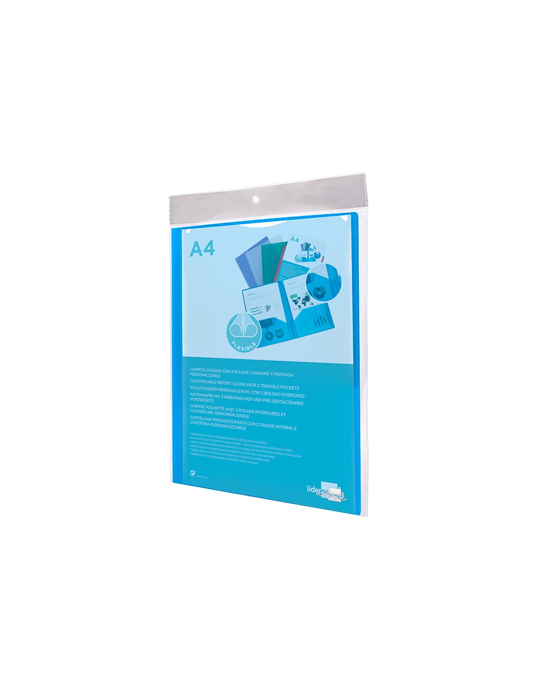Bossa portadocuments. Fabricada amb polipropilè. Amb portada personalitzable. Colors transparents. Format DIN A4. 400 micres.