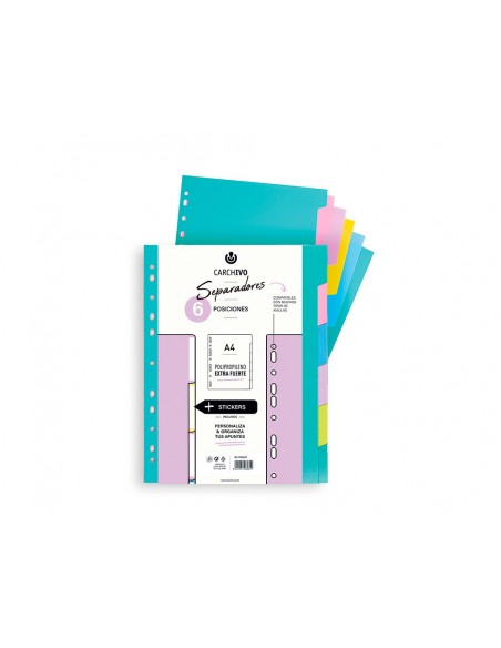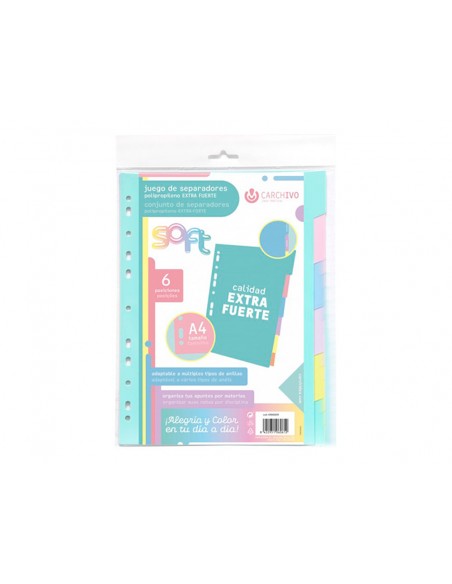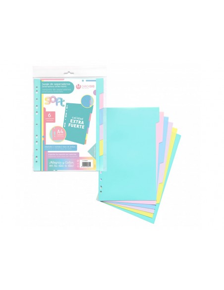Separador carchivo polipropilè soft extra fort din a4 multitaladre joc de 6 posicions