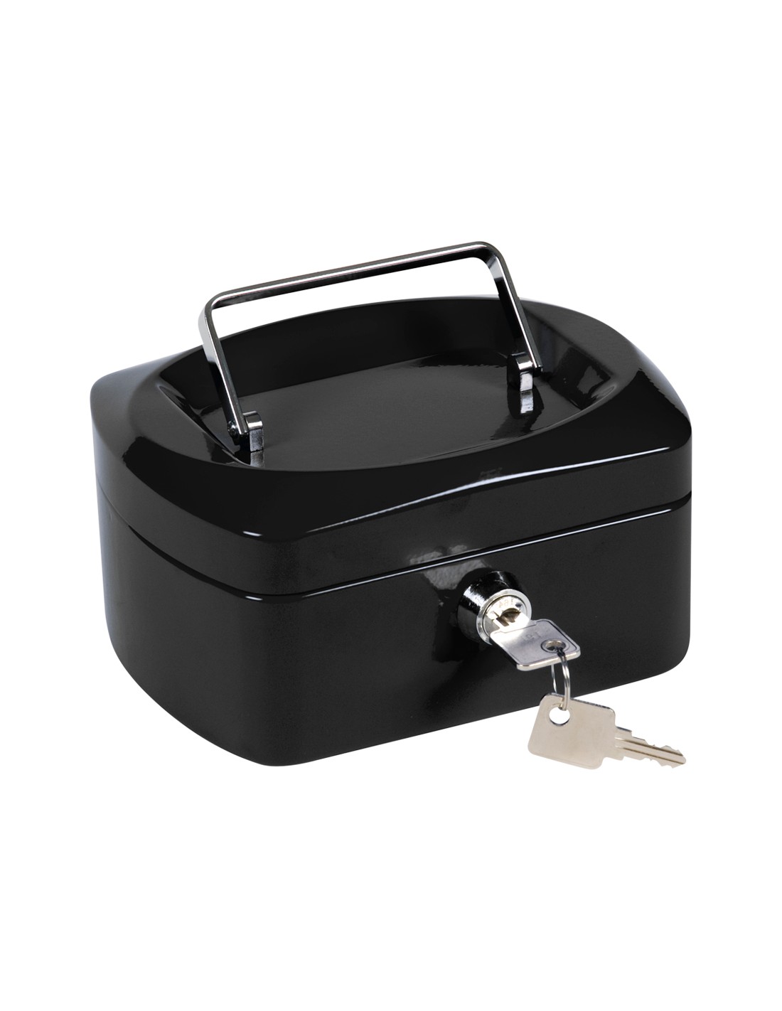 Estructura d´acer de 0,8 mm de gruix. Inclou 2 jocs de claus. Amb classificador per a monedes. Safata extraïble amb buit per a bitllets. (6 ). Mides: 152 x 80 x 115 mm.