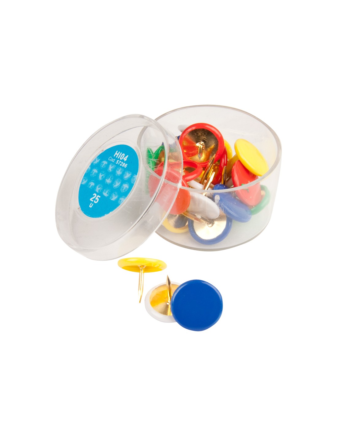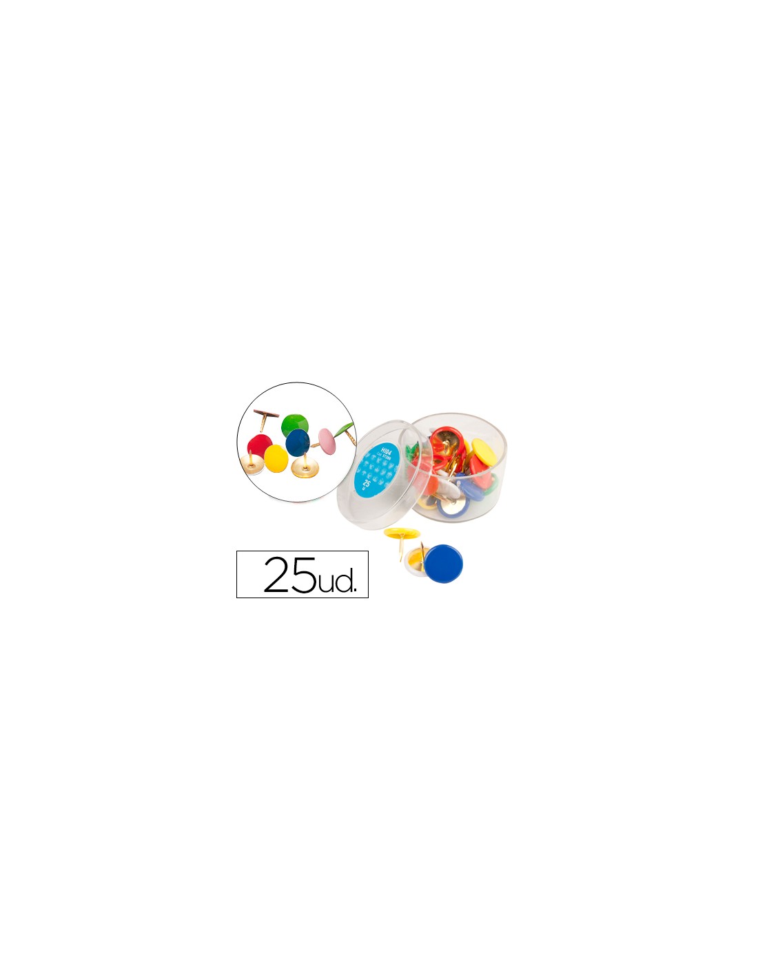 Plastificades. Diàmetre del cap 10 mm. Colors assortits. La caixa de 25 unitats.