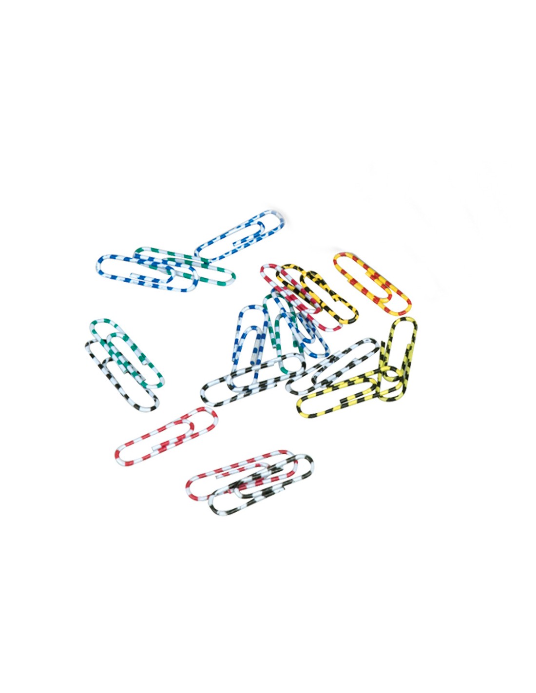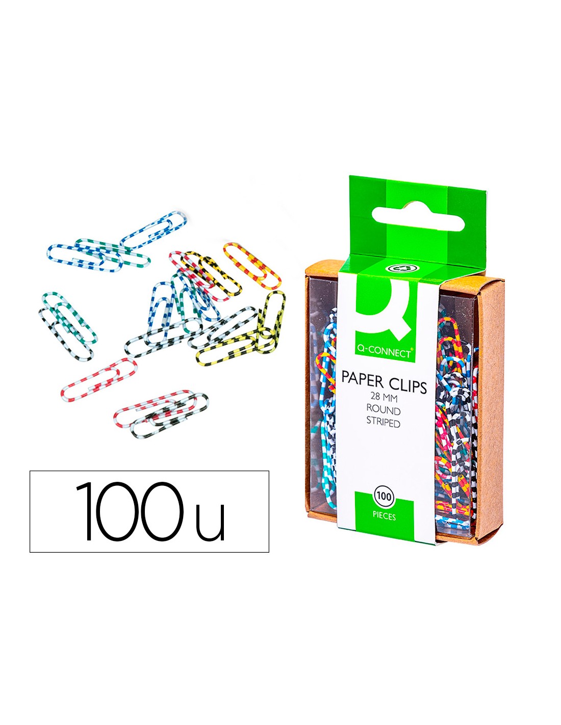 Clips colors ratllats q-connect 28 mm caixa de 100 unitats colors assortits