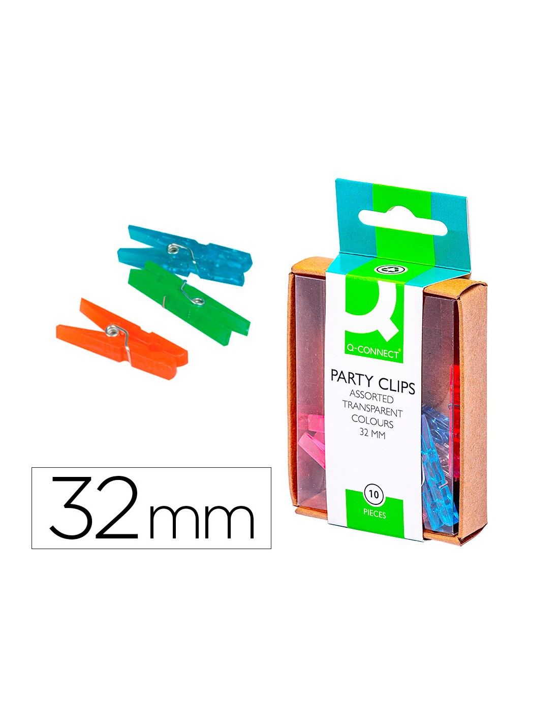 Pinça fantàsia q-connect 32 mm caixa de 10 unitats colors assortits