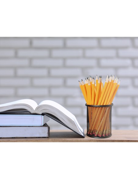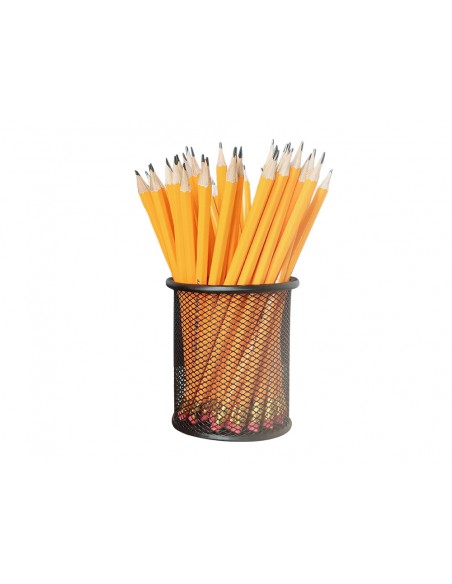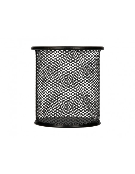 Cubilet rodó per allotjar bolígrafs, llapis, retoladors... Metàl·lic de reixeta. No inclou accessoris. Mides Ø86 x 105 mm.