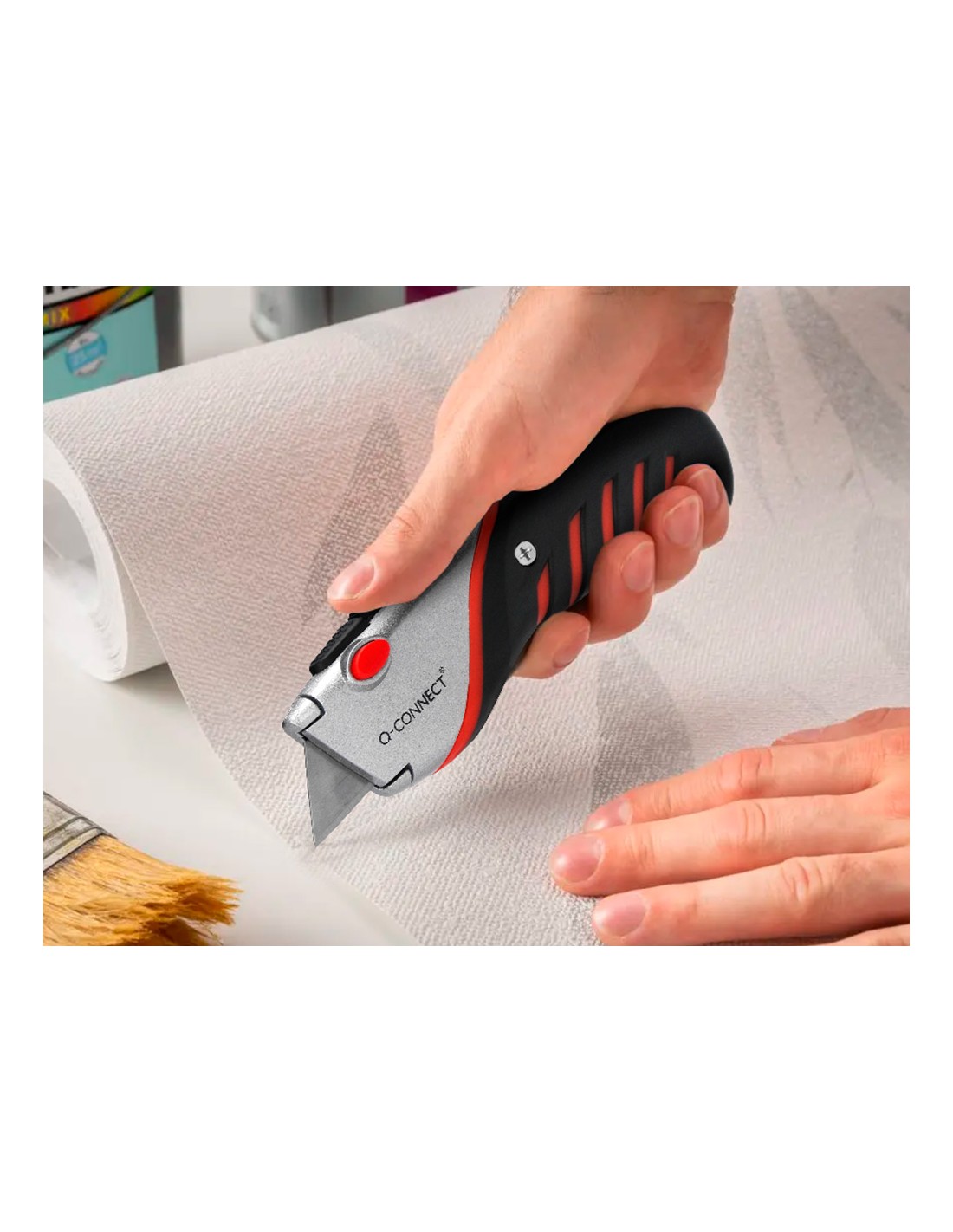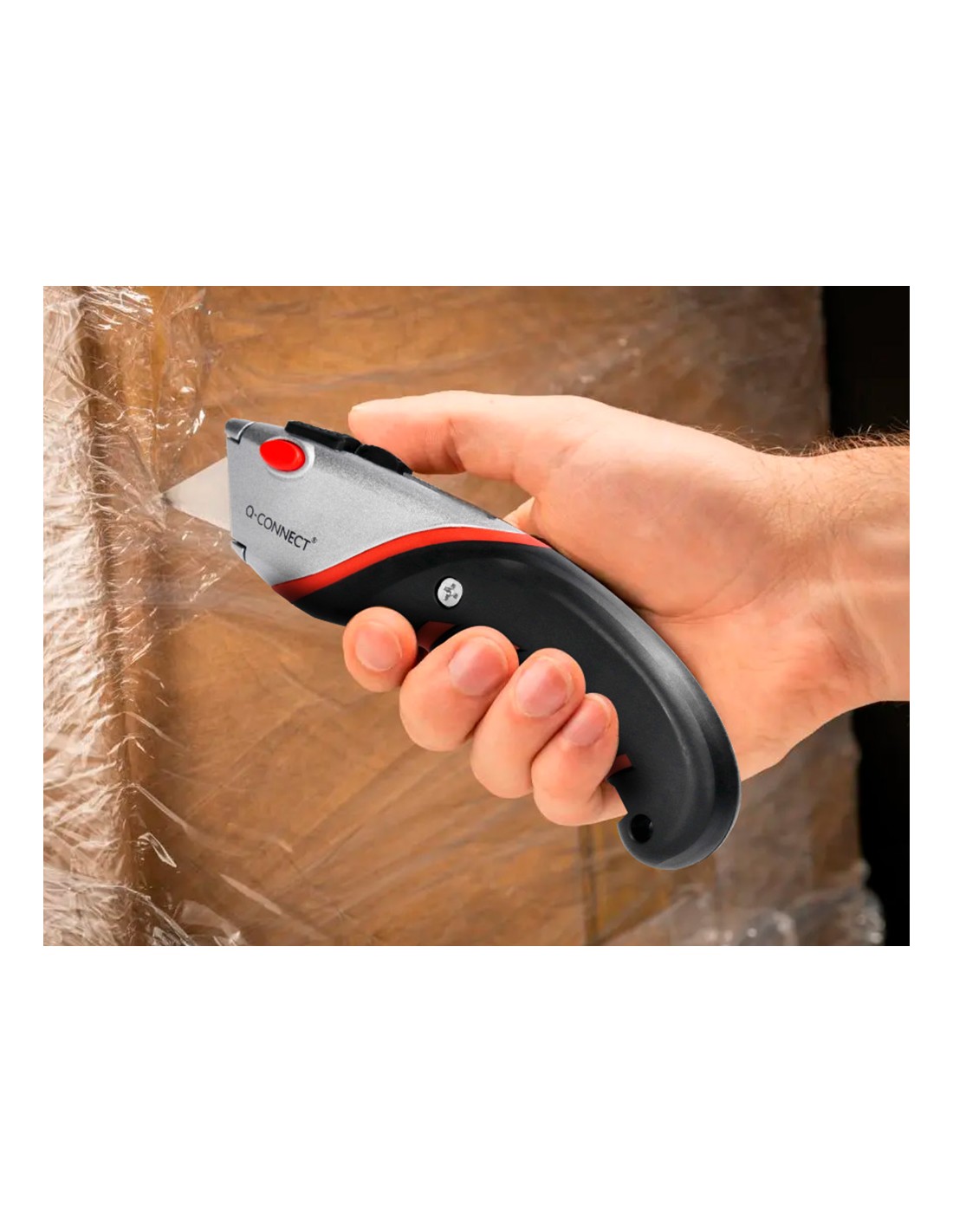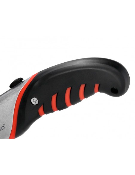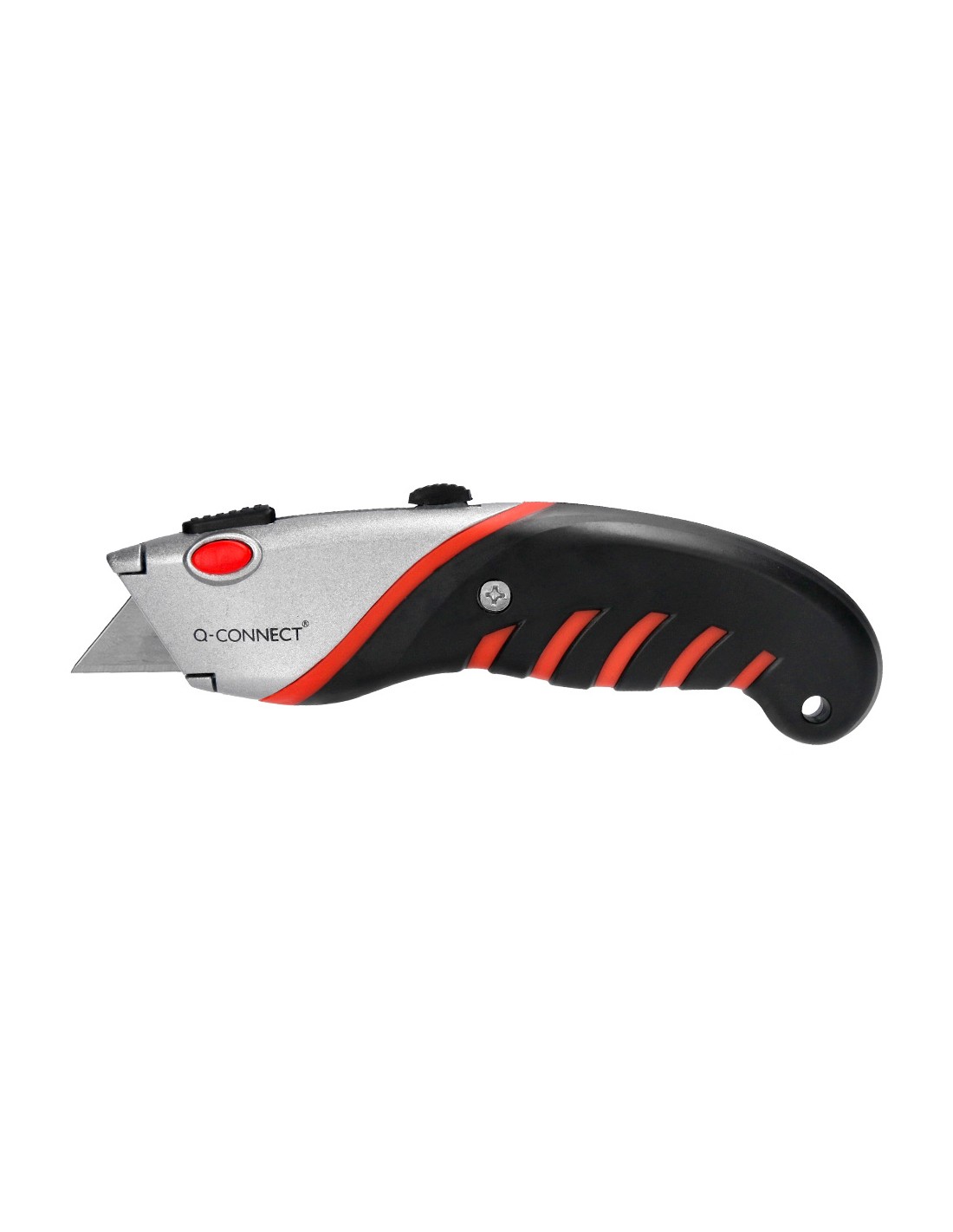 Retràctil i intercanviable. Amb fre de seguretat. Amb mànec de cautxú per a més comoditat d',ús. Color negre, gris i vermell. Fulla de 18 mm d',amplada. Longitud: 170 mm. El blíster de 1 unitat.