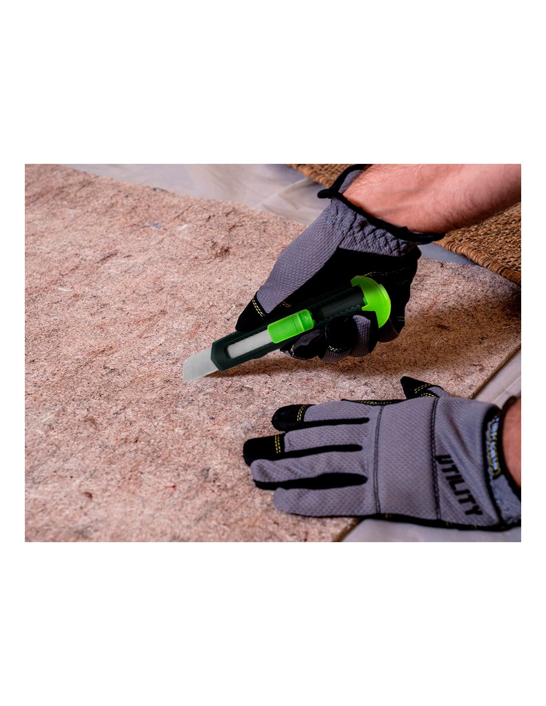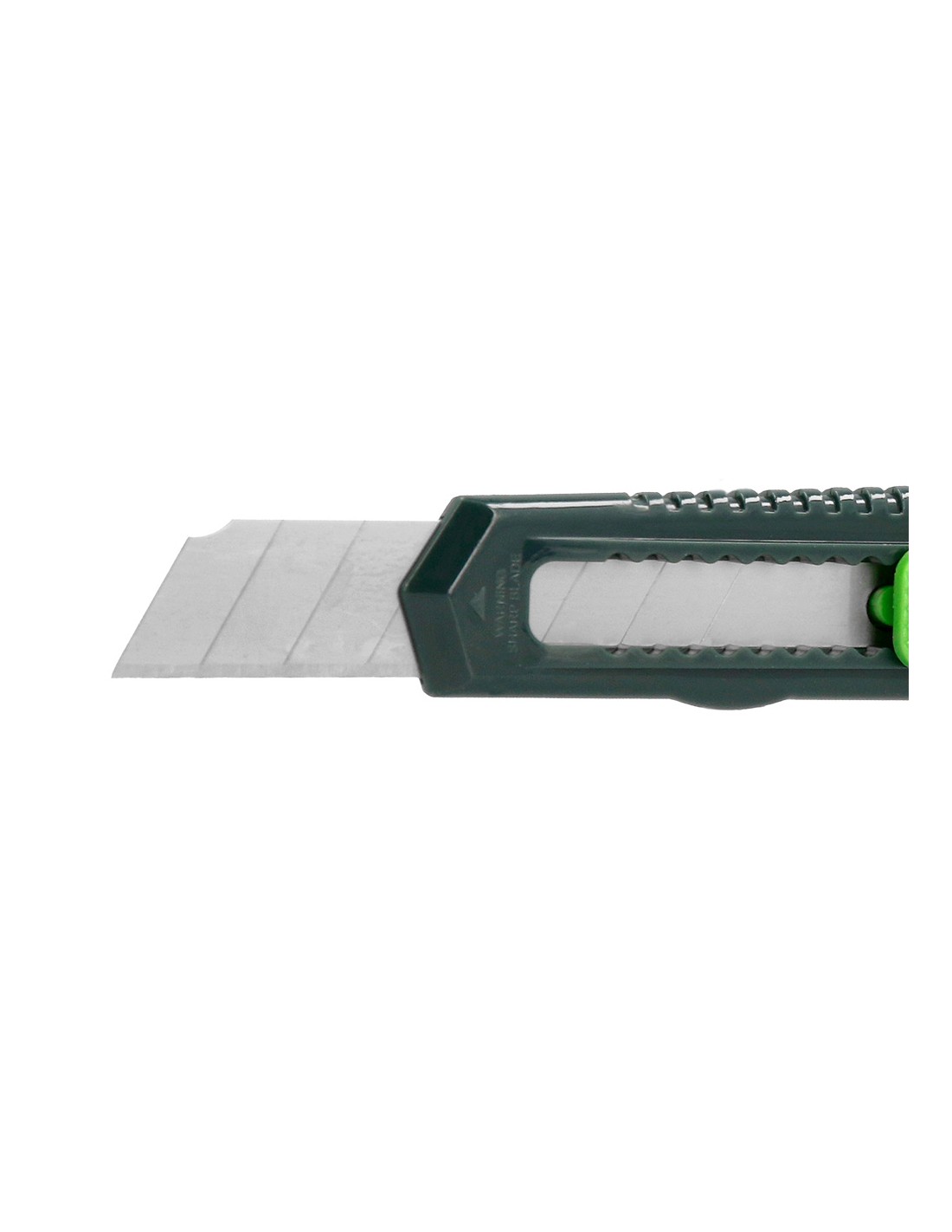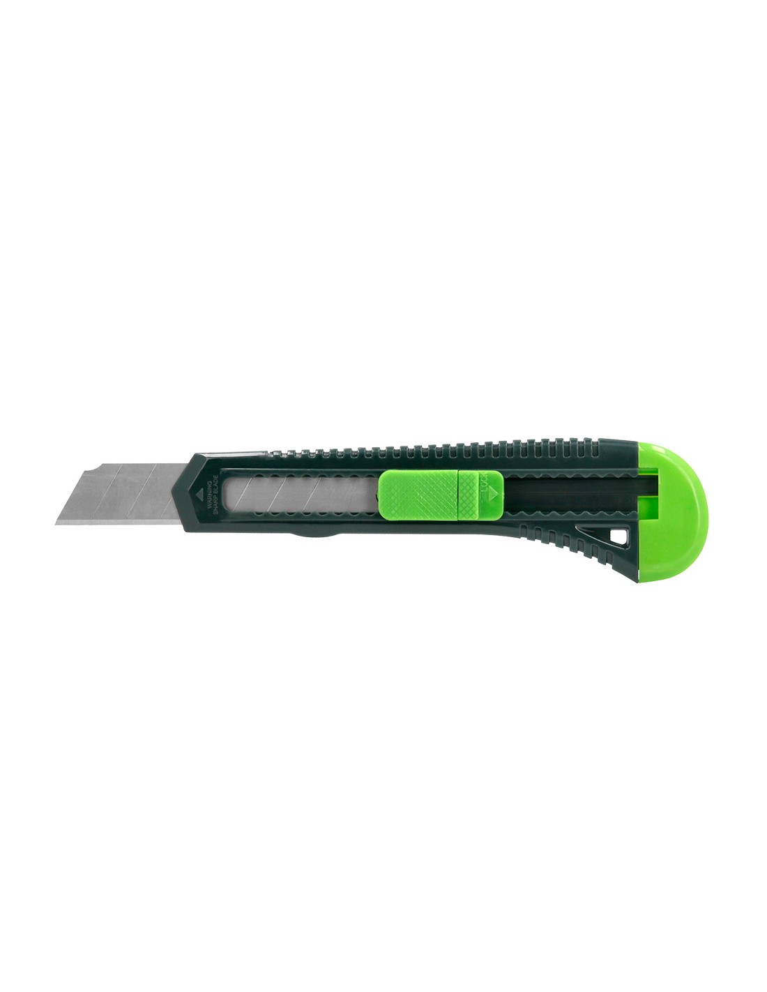 Retràctil i intercanviable. Fulla d',acer pretallat i fre de seguretat. Fulla de 18 mm d',amplada. Longitud 140 mm. El blíster de 1 unitat.