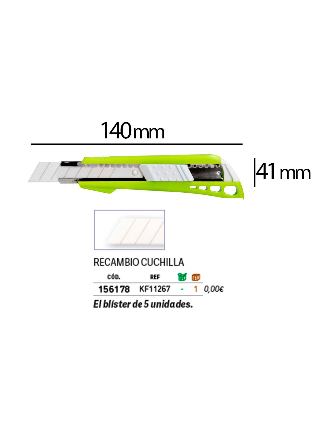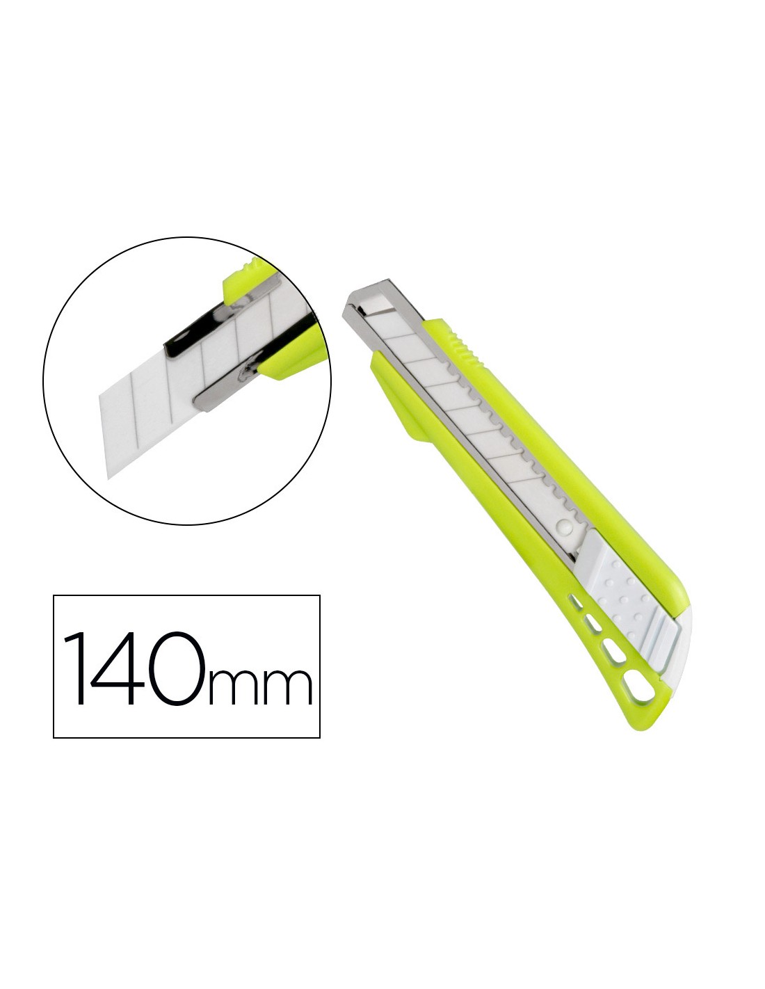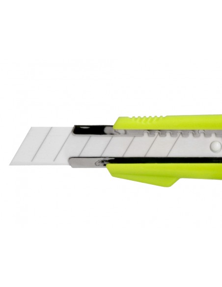 Retràctil i intercanviable. Fulla de ceràmica pretallada. Fulla de 18 mm d',amplada. Longitud 140 mm. El blíster de 1 unitat.