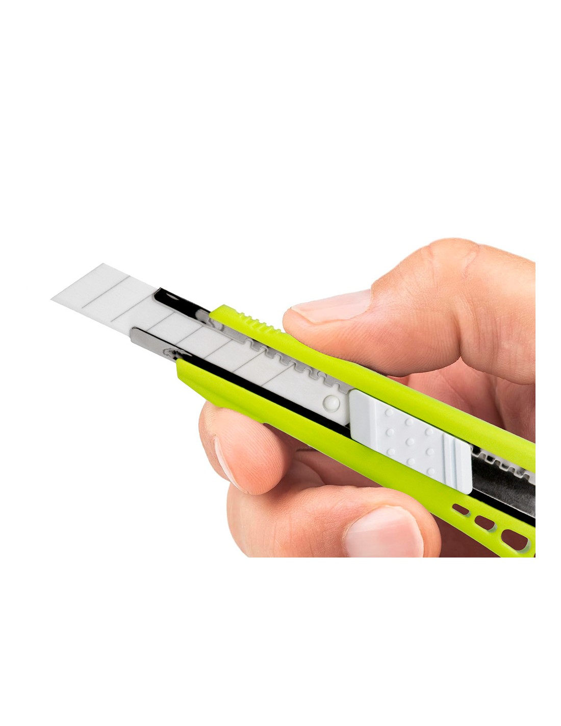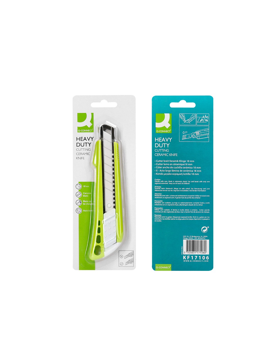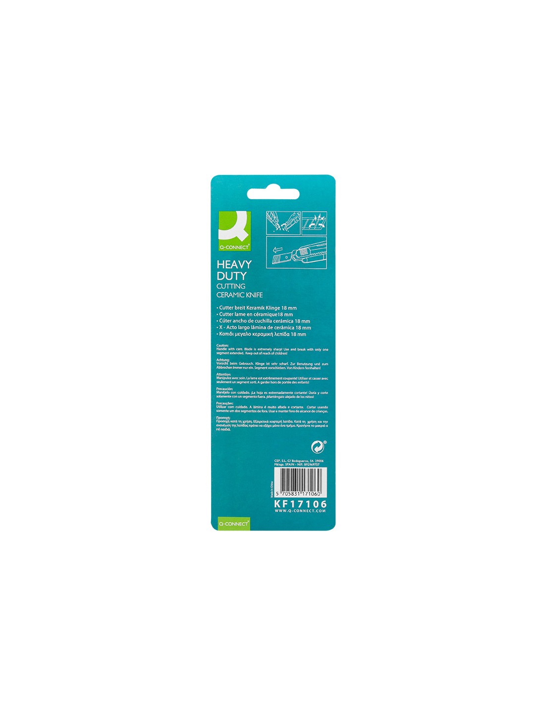 Retràctil i intercanviable. Fulla de ceràmica pretallada. Fulla de 18 mm d',amplada. Longitud 140 mm. El blíster de 1 unitat.