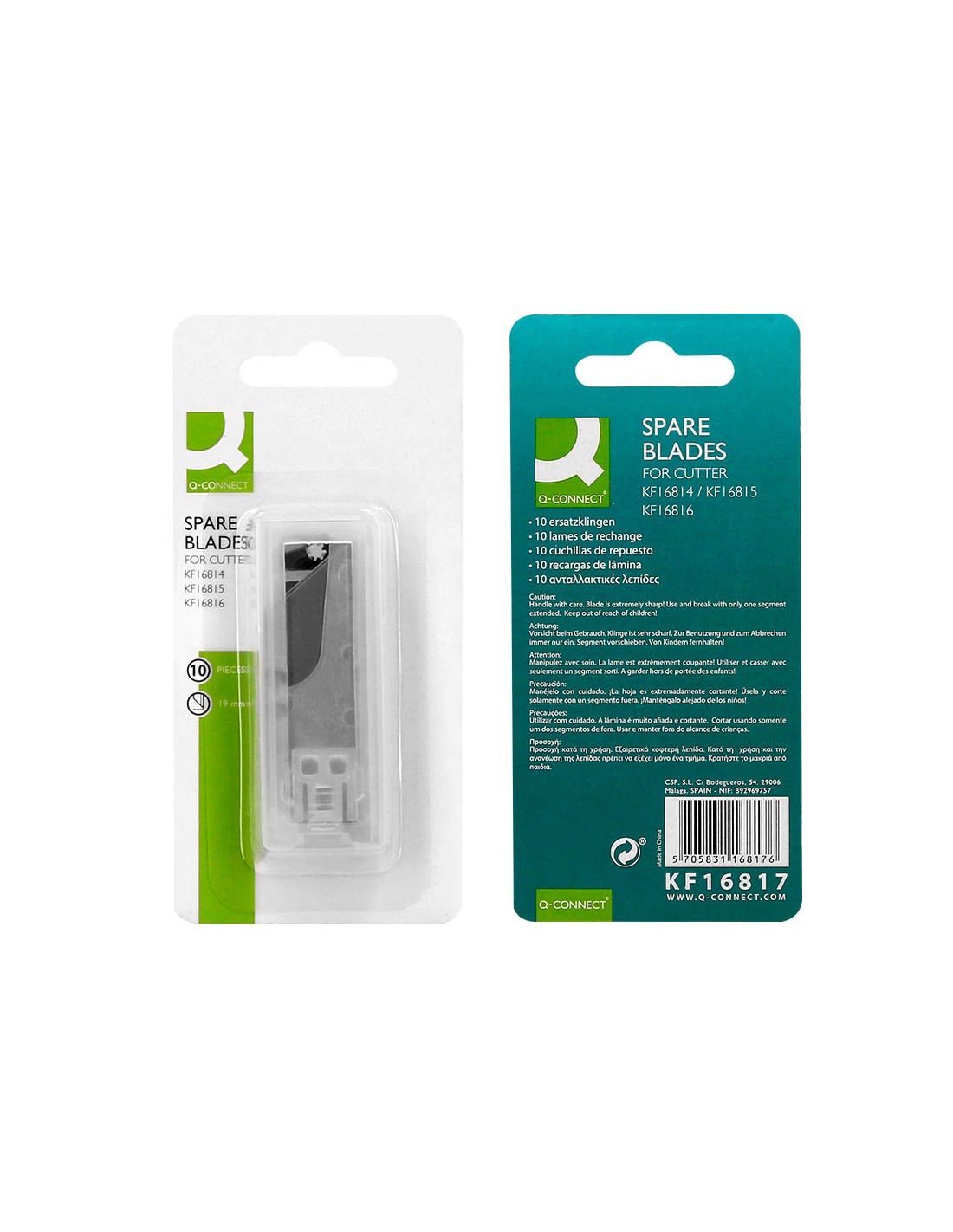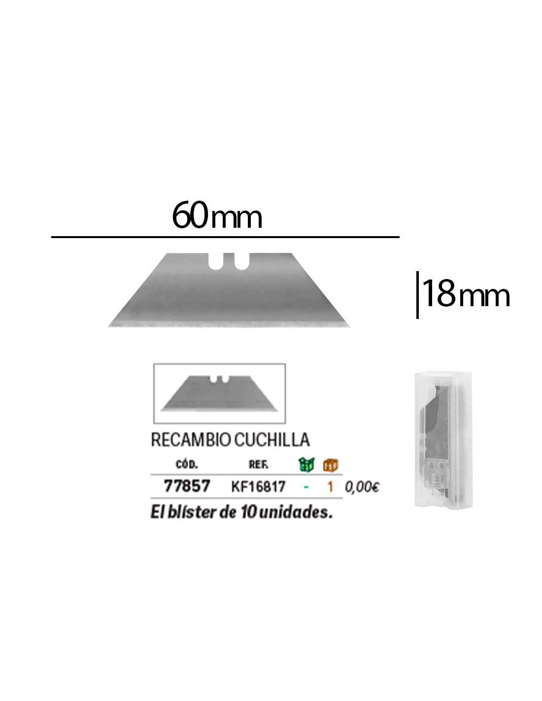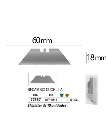 Per cúter KF16814 (cód. 77854), KF16815 (còd. 77855) i KF16816 (còd. 77856). El blíster de 10 unitats de 18 mm.