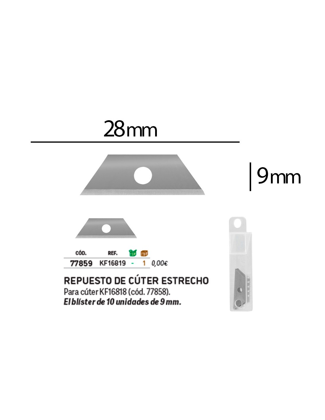 Per cúter KF16818 (cód. 77858). El blíster de 10 unitats de 9 mm.