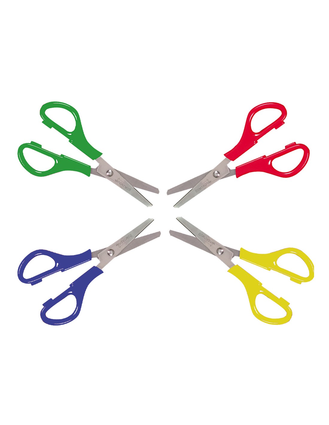 Amb puntes arrodonides antipunxades i fulla d',acer inoxidable. Mànec de plàstic agradable al tacte. Apta per TOT TIPUS D',ÚS. CURTA PAPER, CARTRÓ, fotos, tela, etc.