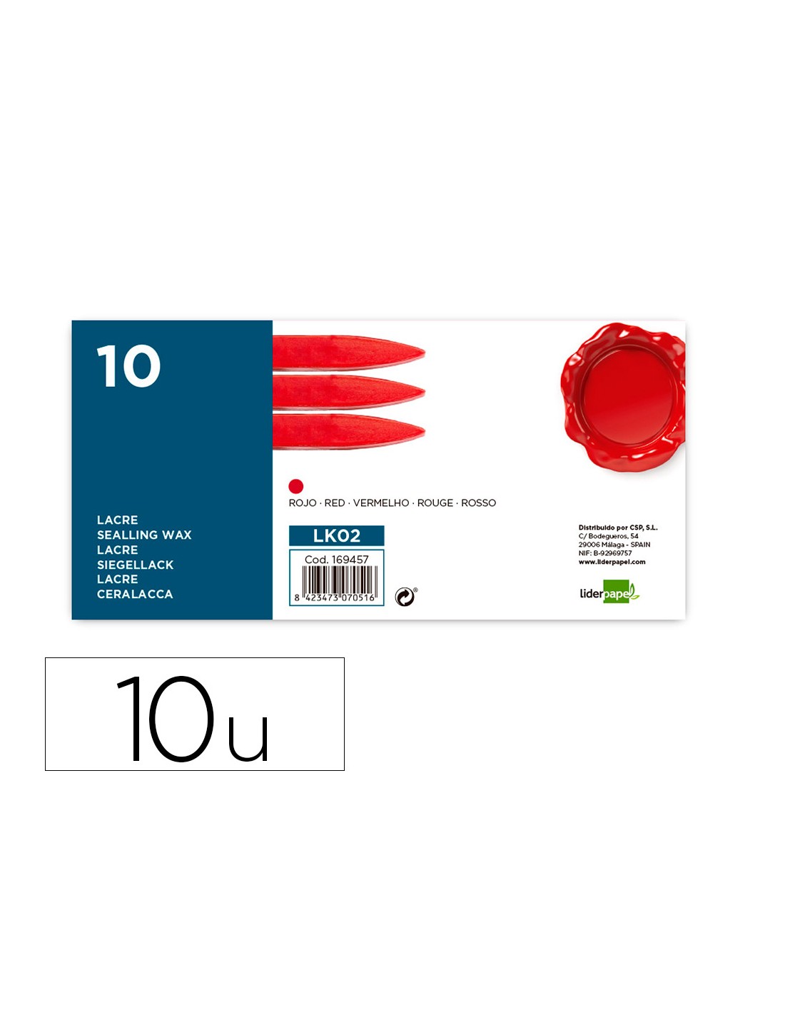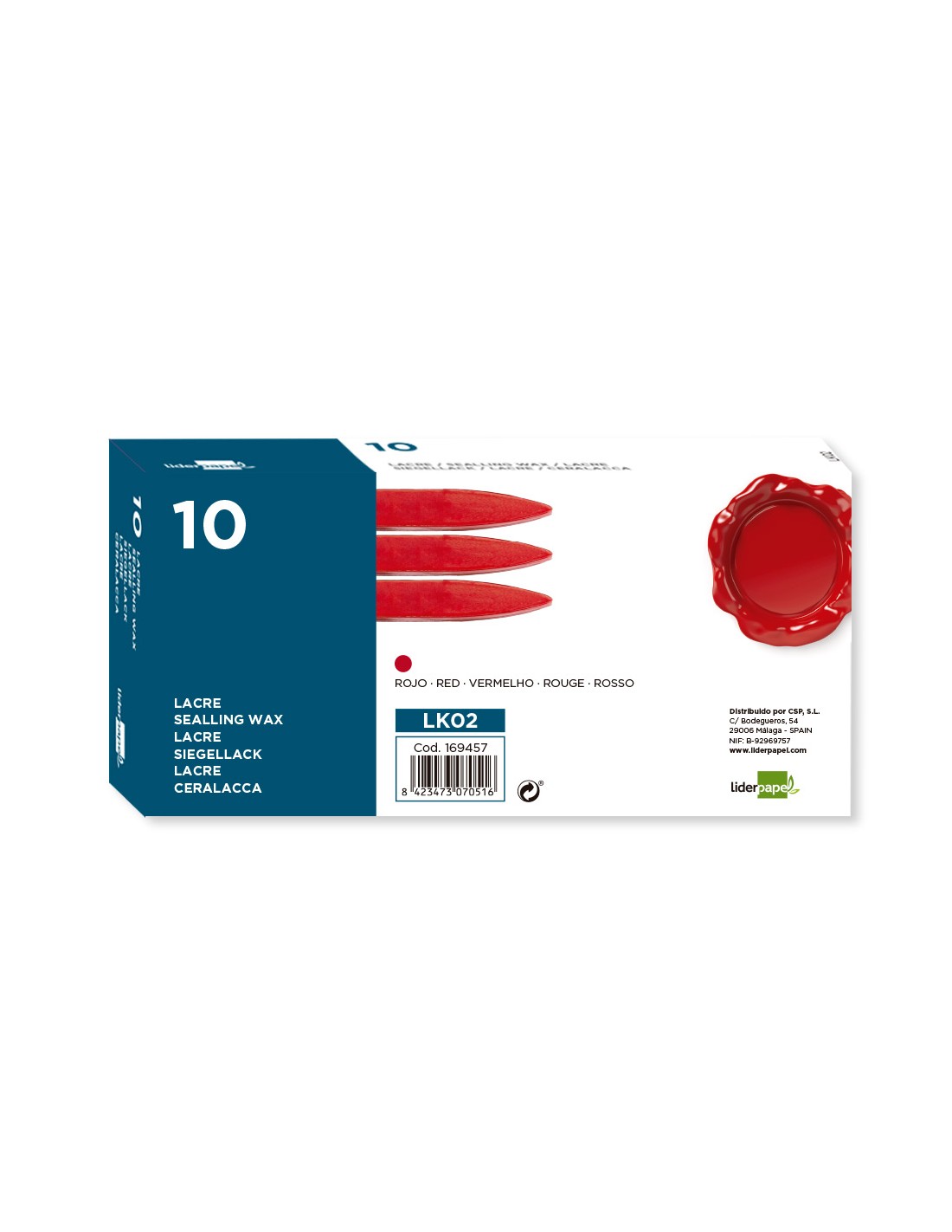 Per segellar i embellir cartes, embalatges, documents, etc. Granulació fina i color vermell intens. Caixa amb 10 barres.